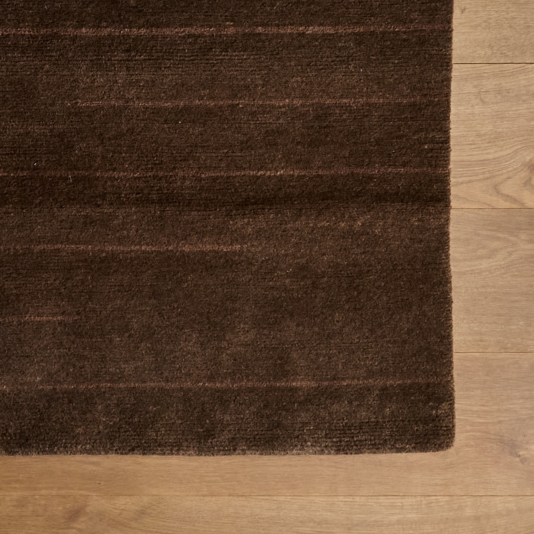 The Jade Rug is a luxurious one-of-a-kind rug constructed from 100% Wool and a cotton foundation. Beautifully hand-knotted and made by local artisans, this rug with dark brown and light brown accents will bring warmth and refinement to any space.
