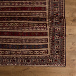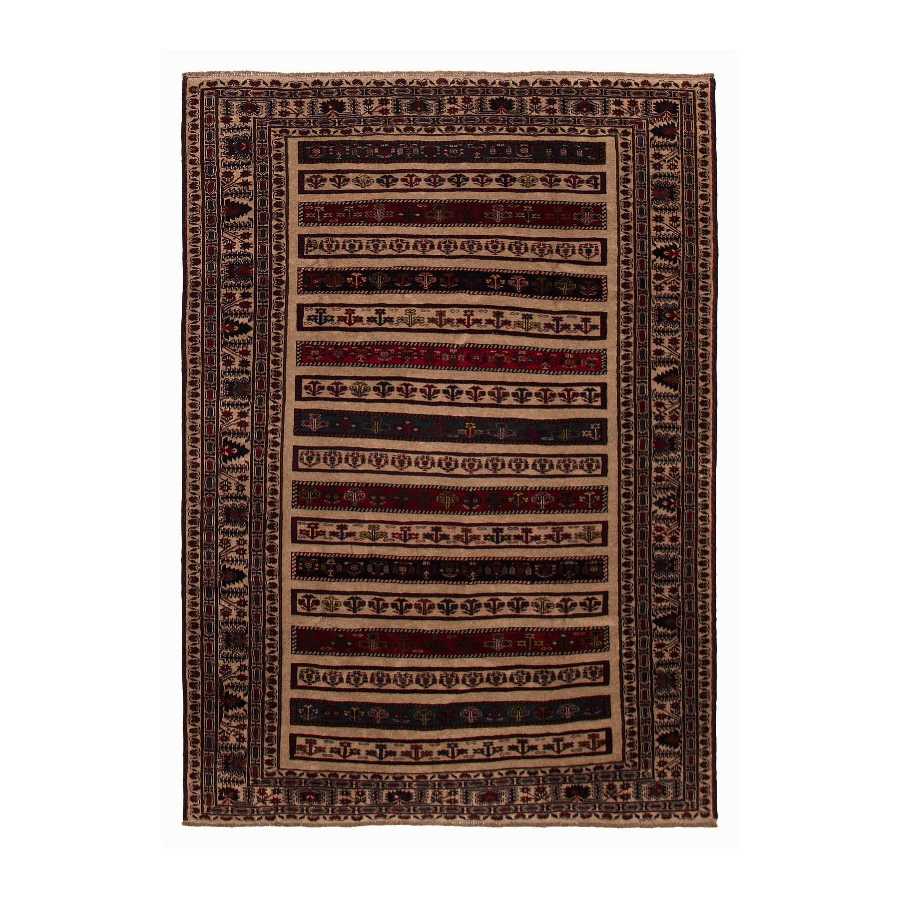 The Marion Rug is a luxurious one-of-a-kind rug constructed from 100% wool and a cotton foundation. Beautifully hand-knotted and made by local artisans, this rug with light brown, dark red, burgundy, dark blue and dark navy accents will bring warmth and refinement to any space.