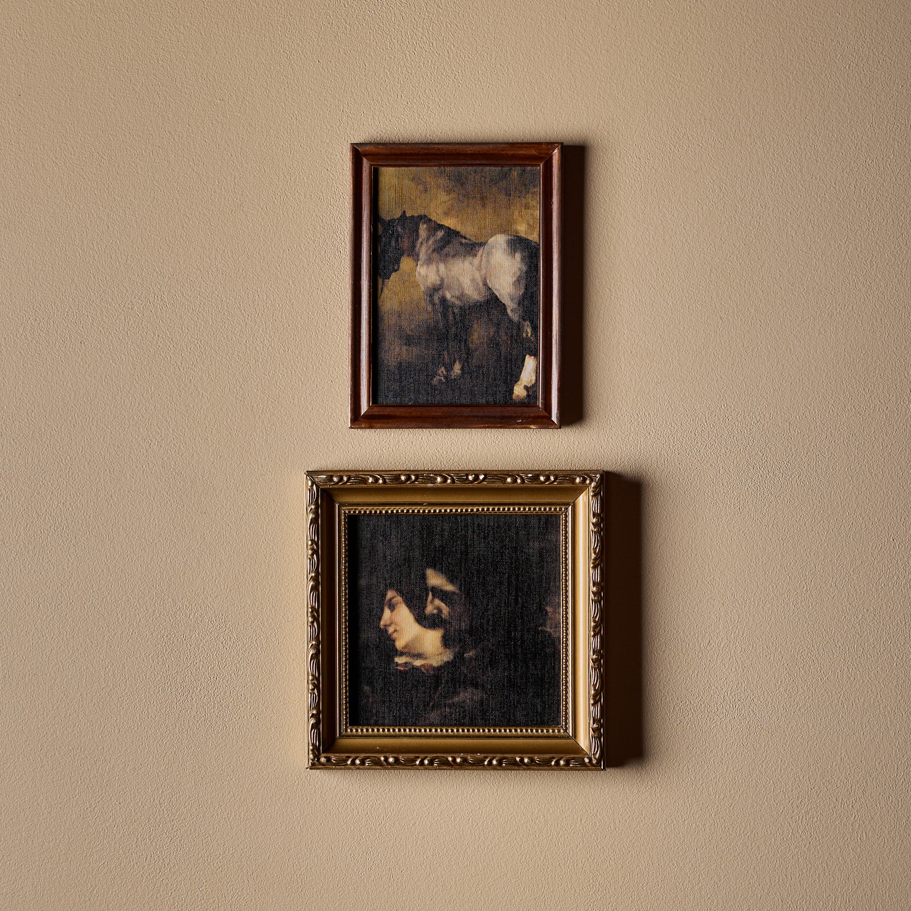 The Duo of Mini Frames Harmonie équine & L’étreinte are unique, hand-mounted wall art pieces. Thoughtfully curated, this duo combines vintage frames with fresh prints of classic artwork, blending old and new for a stunning composition.