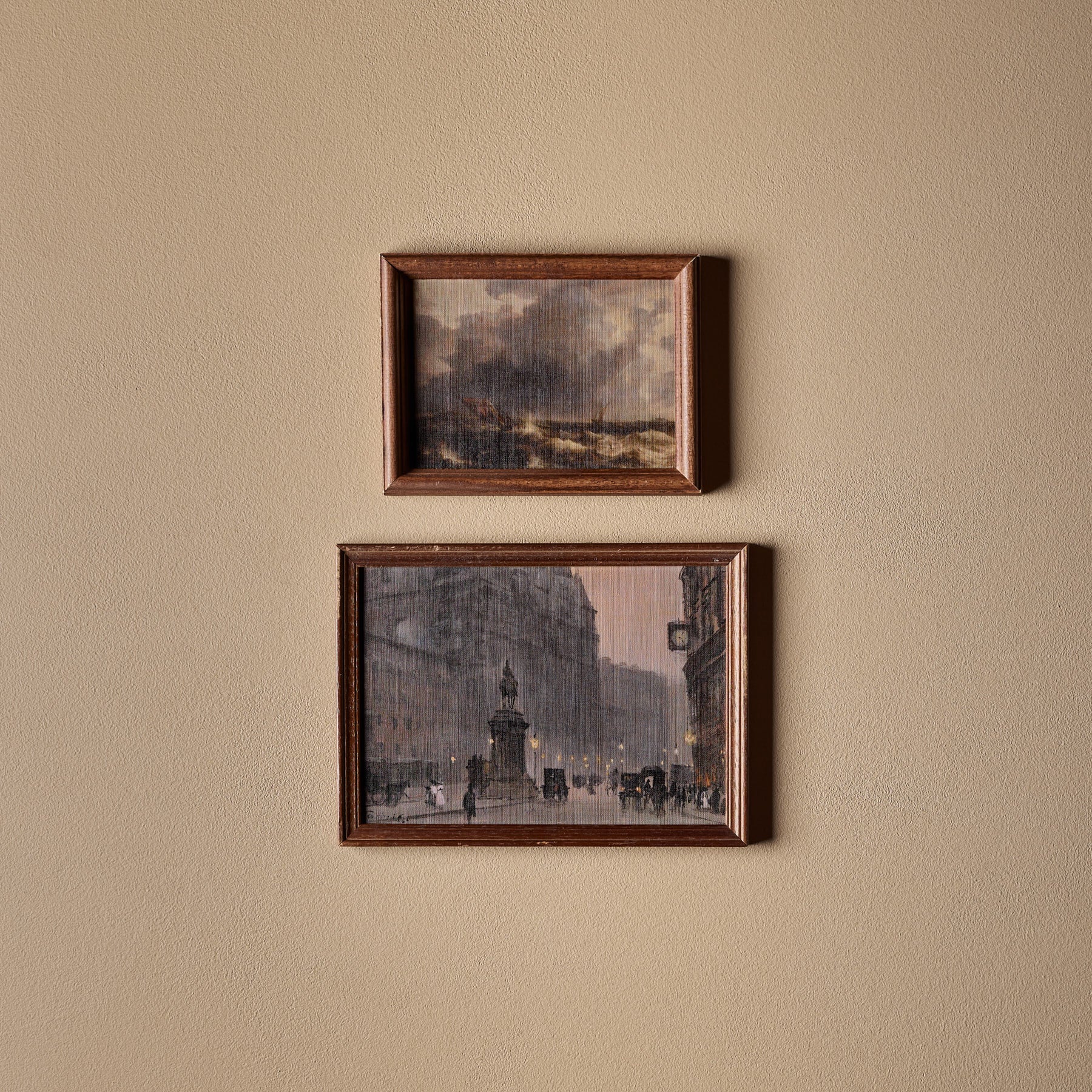 The Duo of Small Frames Le naufrage & L'éclat du quartier are unique, hand-mounted wall art pieces. Thoughtfully curated, this duo combines vintage frames with fresh prints of classic artwork, blending old and new for a stunning composition.