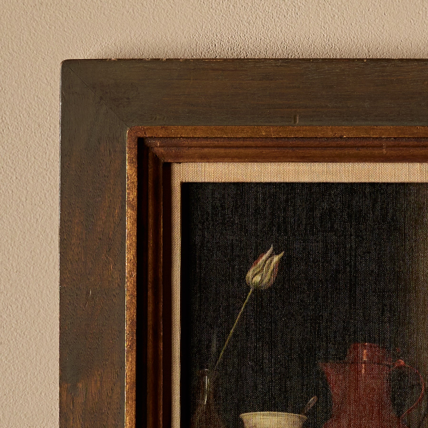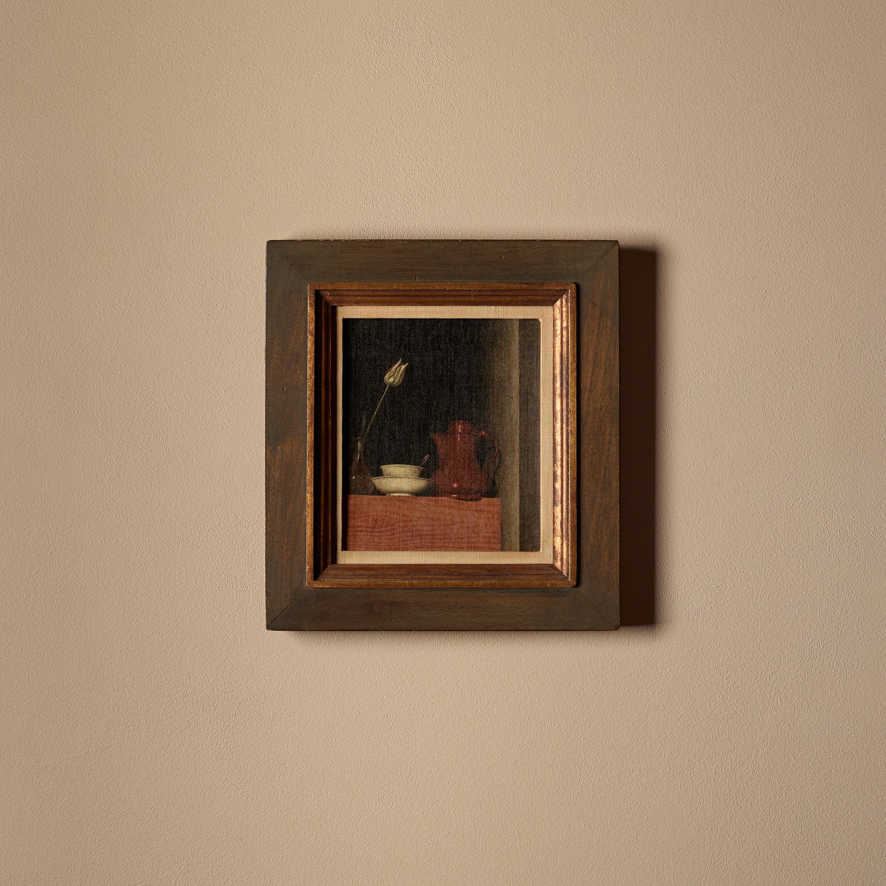 The frames themselves are 100% vintage. However, the canvas inside features a new print. We carefully curate artworks from various artists and pair them with vintage frames to create a unique and beautiful piece of art. Each composition is handmade.