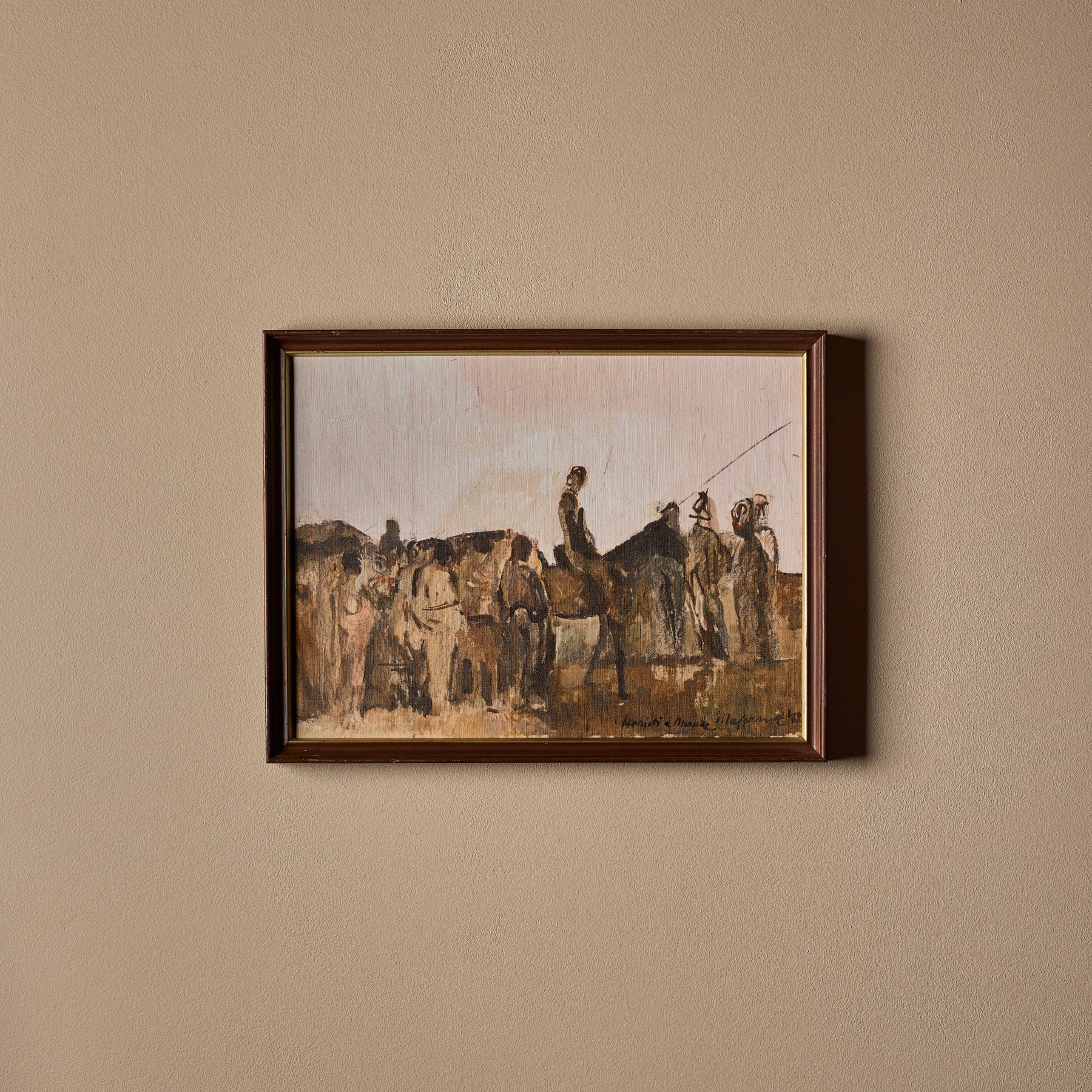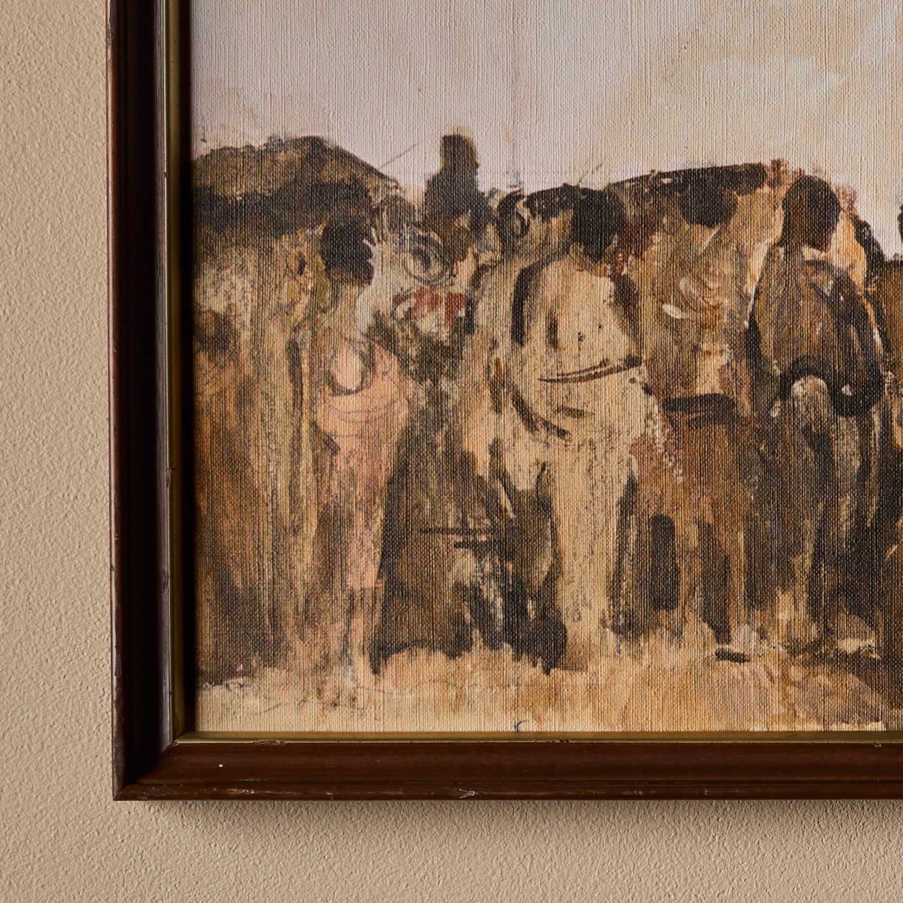The frames themselves are 100% vintage. However, the canvas inside features a new print. We carefully curate artworks from various artists and pair them with vintage frames to create a unique and beautiful piece of art. Each composition is handmade.