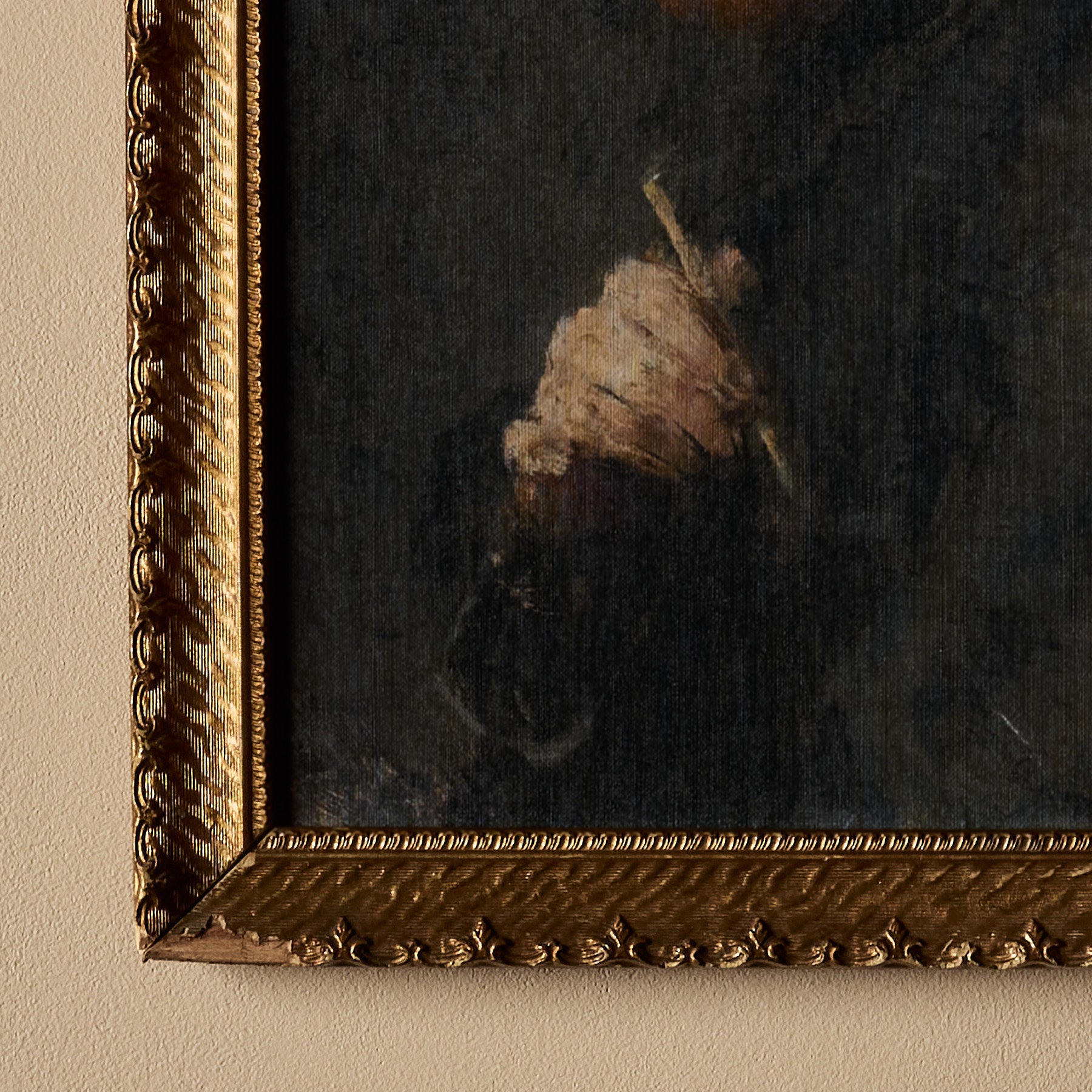 The frames themselves are 100% vintage. However, the canvas inside features a new print. We carefully curate artworks from various artists and pair them with vintage frames to create a unique and beautiful piece of art. Each composition is handmade.