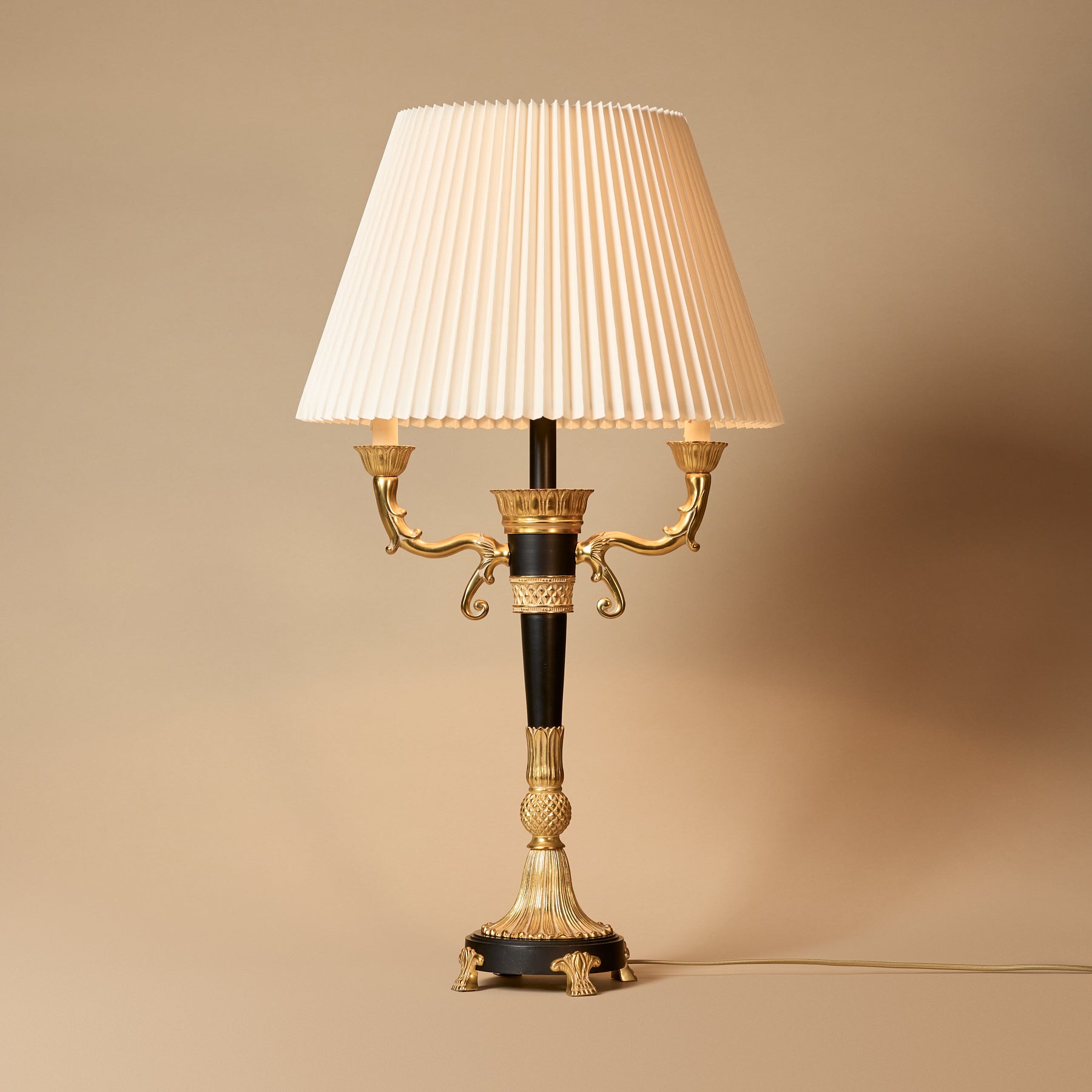 * Requires 1 regular bulb, and two smaller than standard bulbs. Some oxidation, particularly in the recessed areas. This lamp offers two lighting modes – a bright setting and a softer one (see pictures for reference).
