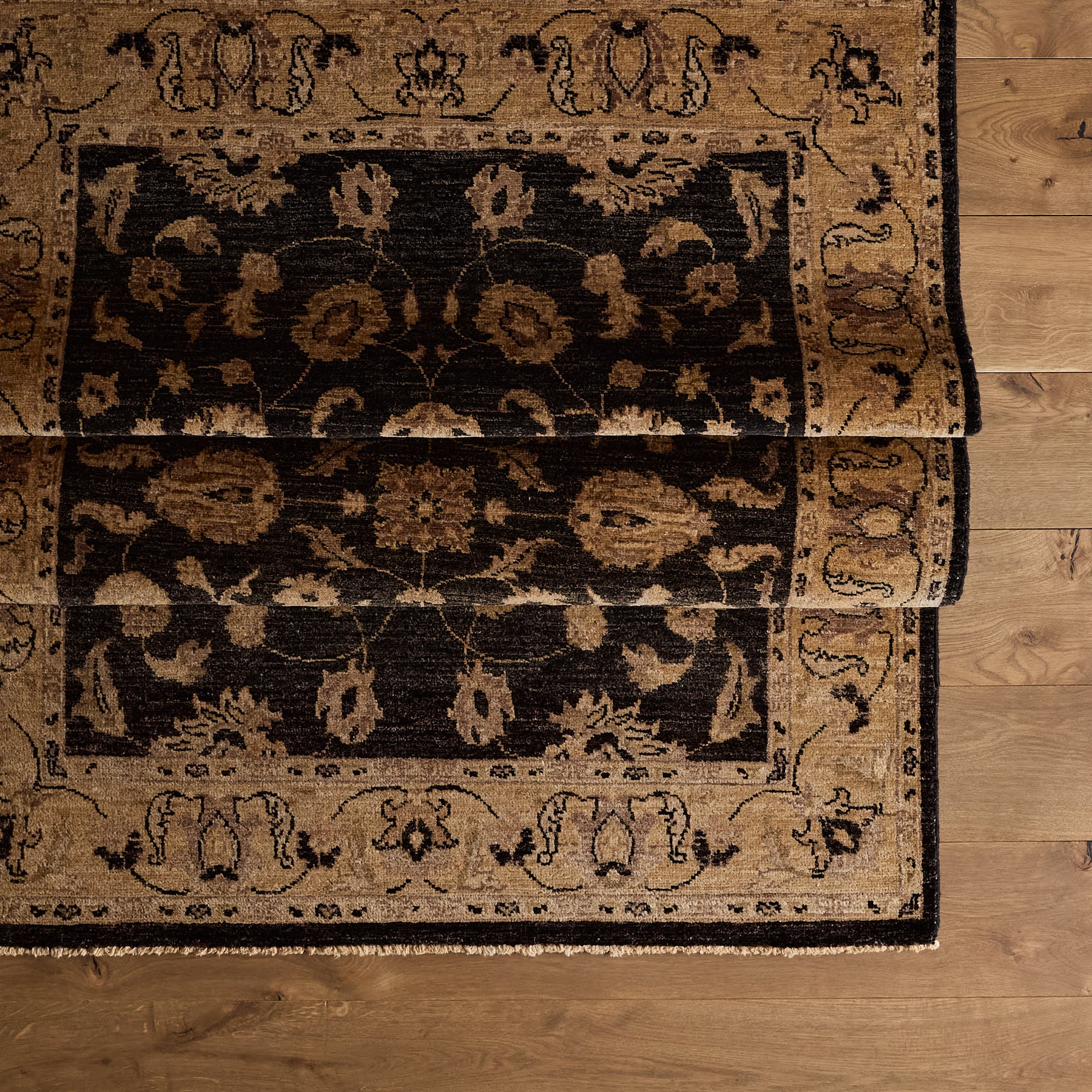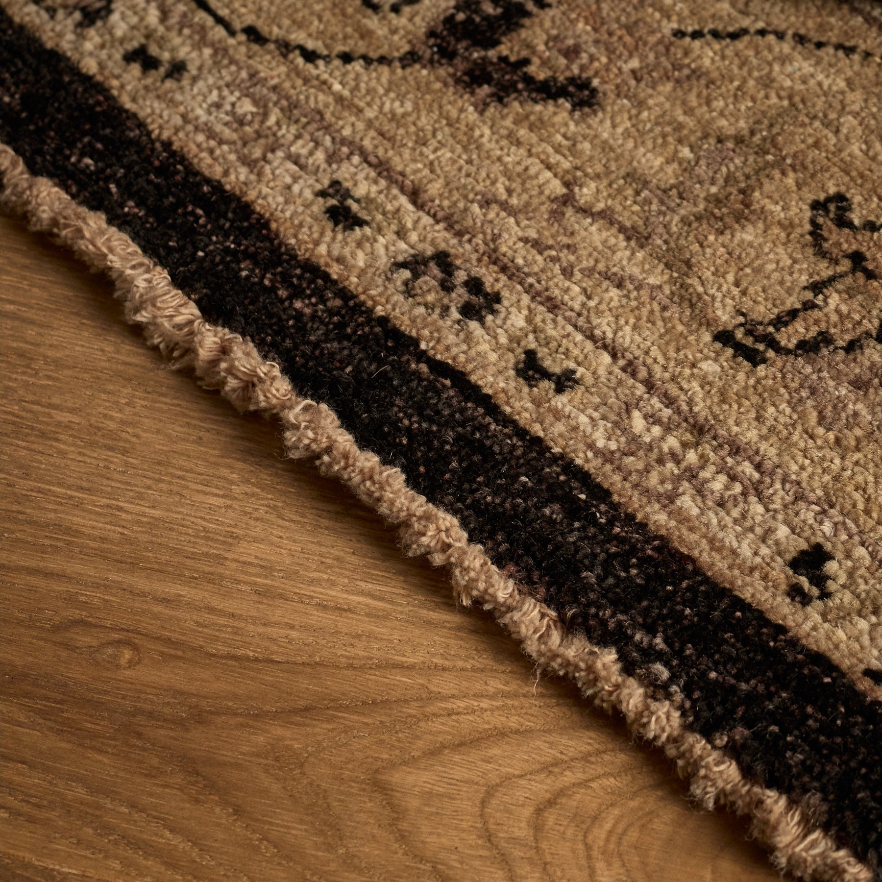 The Amber Rug is a luxurious one-of-a-kind rug constructed from 100% Wool and a cotton foundation. Beautifully hand-knotted and made by local artisans, this rug with black, beige, tan, light grey, light khaki and taupe accents will bring warmth and refinement to any space.