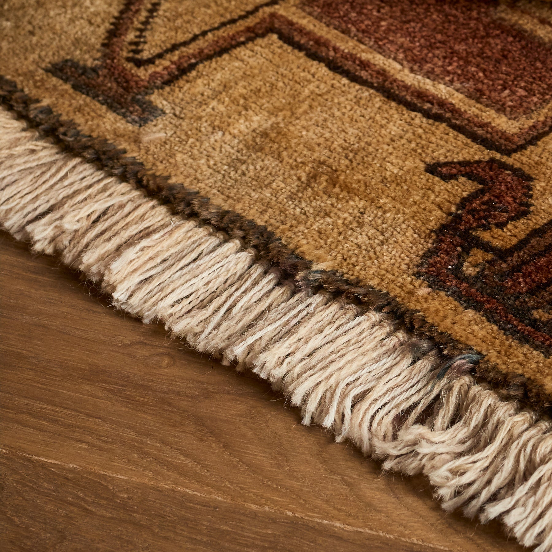 The Arya Rug is a luxurious one-of-a-kind rug constructed from 100% Wool and a cotton foundation. Beautifully hand-knotted and made by local artisans, this rug with light gold, tan, brown, black, taupe and copper accents will bring warmth and refinement to any space.
