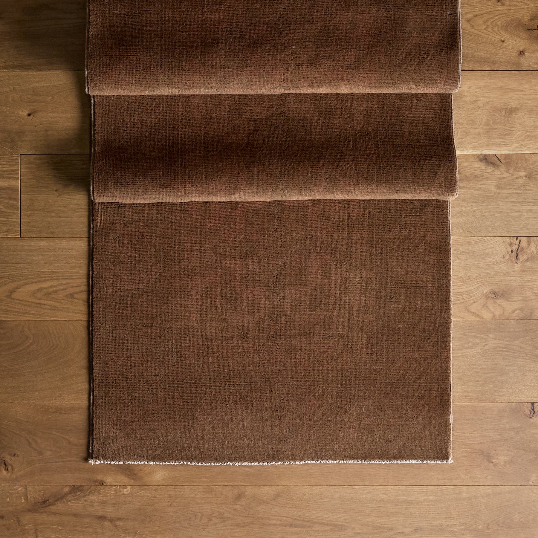 The Carmen Rug is a luxurious one-of-a-kind rug constructed from 100% wool and a cotton foundation. Beautifully hand-knotted and made by local artisans, this rug with brown accents will bring warmth and refinement to any space.