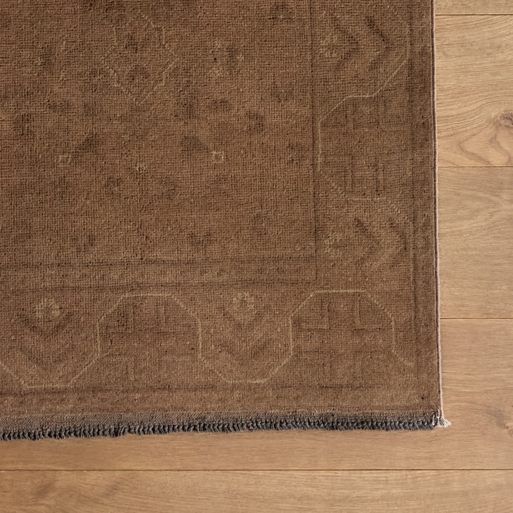 The Gemel Rug is a luxurious one-of-a-kind rug constructed from 100% wool and a cotton foundation. Beautifully hand-knotted and made by local artisans, this rug with brown accents will bring warmth and refinement to any space.