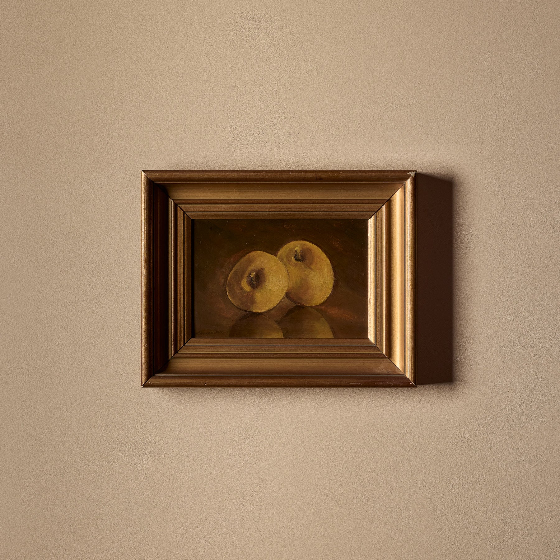 Handpicked from markets across Europe, this 1930s European Still Life with Apples Signed S.Musetta offers a glimpse into old-world Europe, filled with rich history and vibrant stories. Its subtle chips and wear add character, making it a truly unique piece brimming with authenticity and timeless charm.