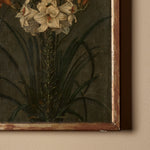 Handpicked from markets across Europe, this Unsigned European Antique Botanical Still Life with Lilies c.1900 offers a glimpse into old-world Europe, filled with rich history and vibrant stories. Its subtle chips and wear add character, making it a truly unique piece brimming with authenticity and timeless charm.