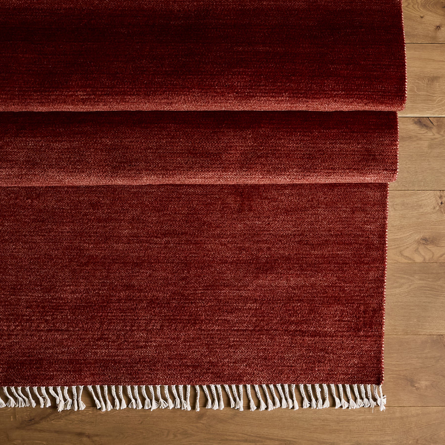 The Janet Rug is a luxurious one-of-a-kind rug constructed from 100% Wool and a cotton foundation. Beautifully hand-knotted and made by local artisans, this rug with copper, dark copper and red accents will bring warmth and refinement to any space.