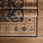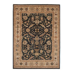 The Selma Rug is a luxurious one-of-a-kind rug constructed from 100% Wool and a cotton foundation. Beautifully hand-knotted and made by local artisans, this rug with dark navy, beige, tan, ocher, brown, copper, ivory, khaki, light green and light blue accents will bring warmth and refinement to any space.