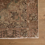 The Tanja Rug is a luxurious one-of-a-kind rug constructed from 100% Wool and a cotton foundation. Beautifully hand-knotted and made by local artisans, this rug with brown, copper, dark brown, light green and light khaki accents will bring warmth and refinement to any space.