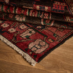 The Tougas Rug is a luxurious one-of-a-kind rug constructed from 100% Wool and a cotton foundation. Beautifully hand-knotted and made by local artisans, this rug with red, black, ivory, light brown, red and green accents will bring warmth and refinement to any space.