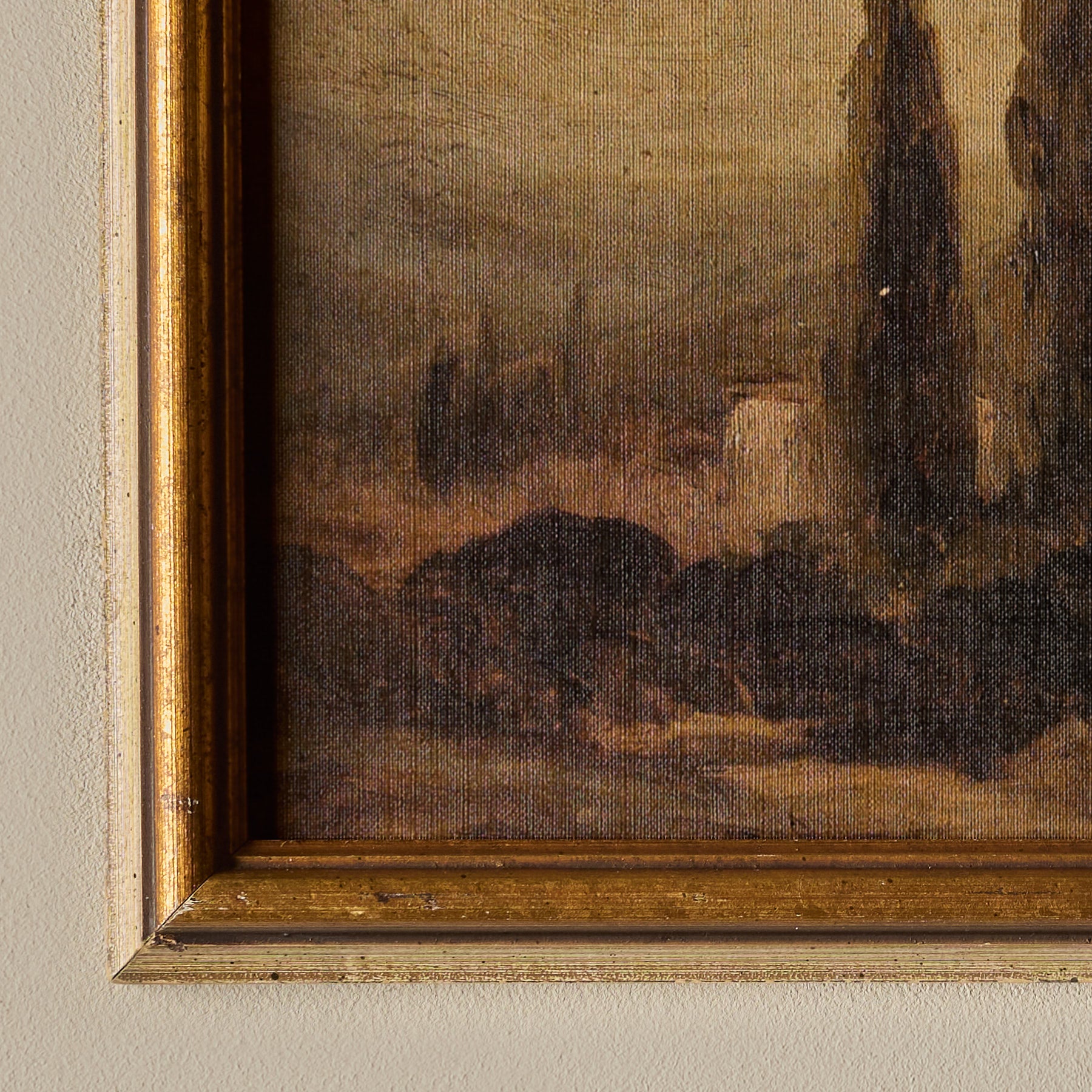 The frames themselves are 100% vintage. However, the canvas inside features a new print. We carefully curate artworks from various artists and pair them with vintage frames to create a unique and beautiful piece of art. Each composition is handmade.