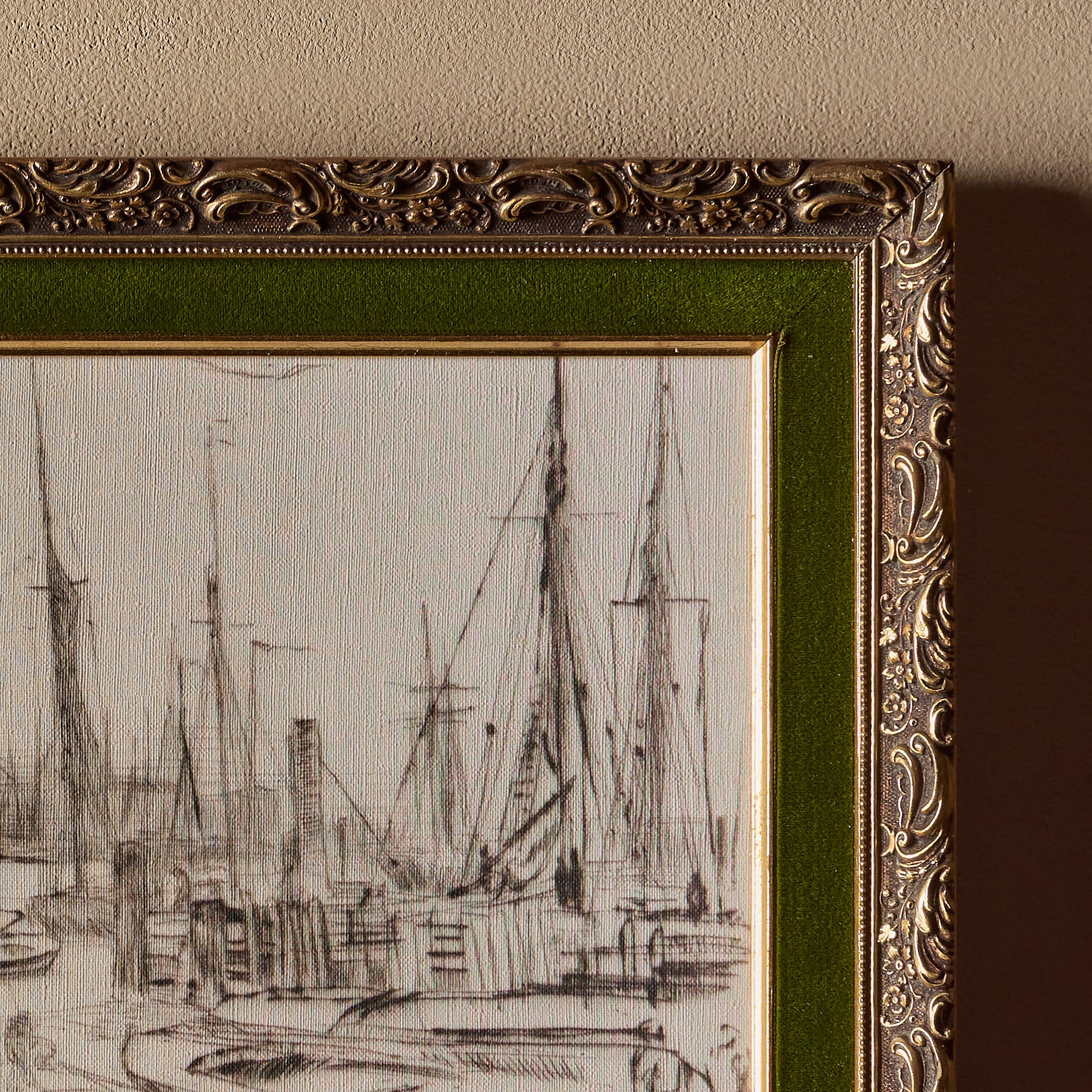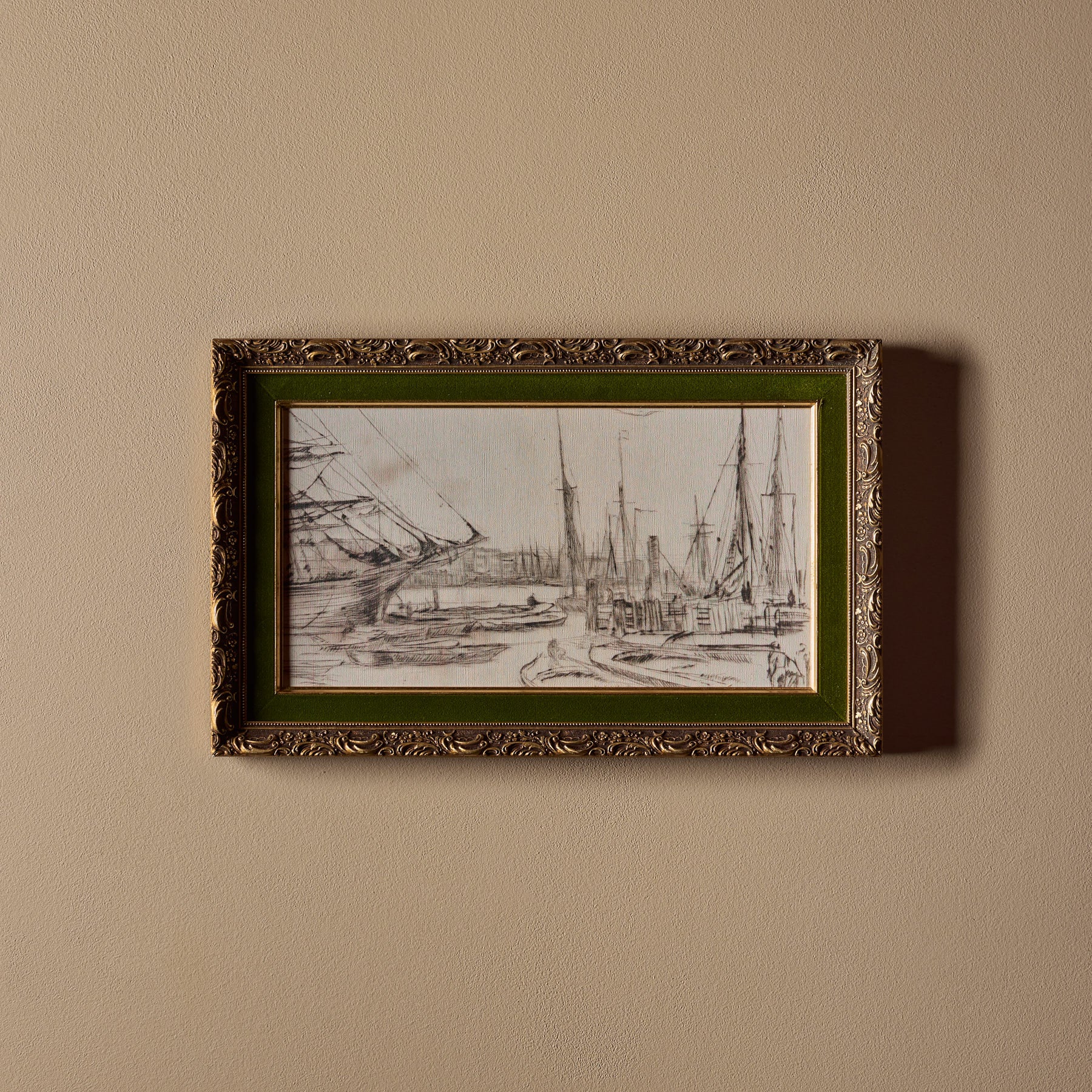 Esquisse portuaire is a one-of-a-kind hand mounted wall art made from a solid wood frame and a printed canvas. Carefully curated by us, Esquisse portuaire features a vintage framing and a fresh new print of a classic artwork, mixing old and new to create a masterful composition.