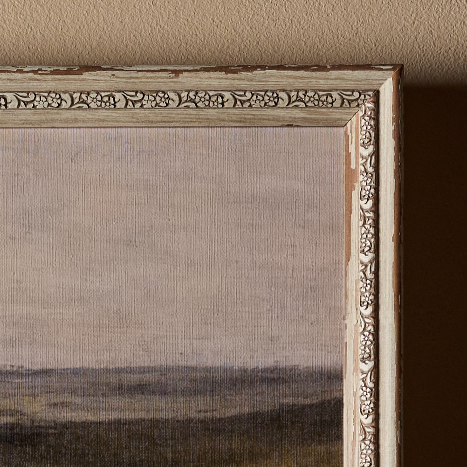 Horizon paisible is a one-of-a-kind hand mounted wall art made from a solid wood frame and a printed canvas. Carefully curated by us, Horizon paisible features a vintage framing and a fresh new print of a classic artwork, mixing old and new to create a masterful composition.