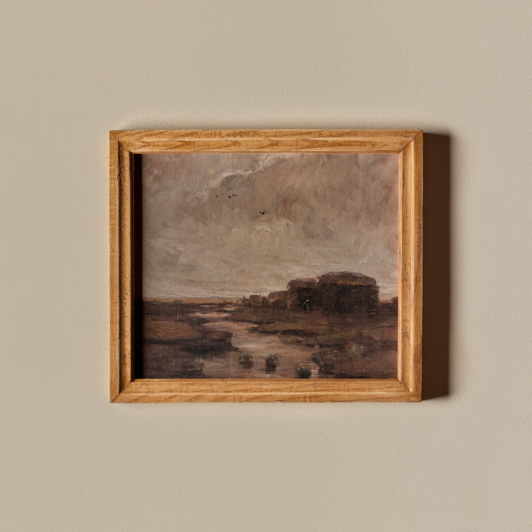 The frames themselves are 100% vintage. However, the canvas inside features a new print. We carefully curate artworks from various artists and pair them with vintage frames to create a unique and beautiful piece of art. Each composition is handmade.