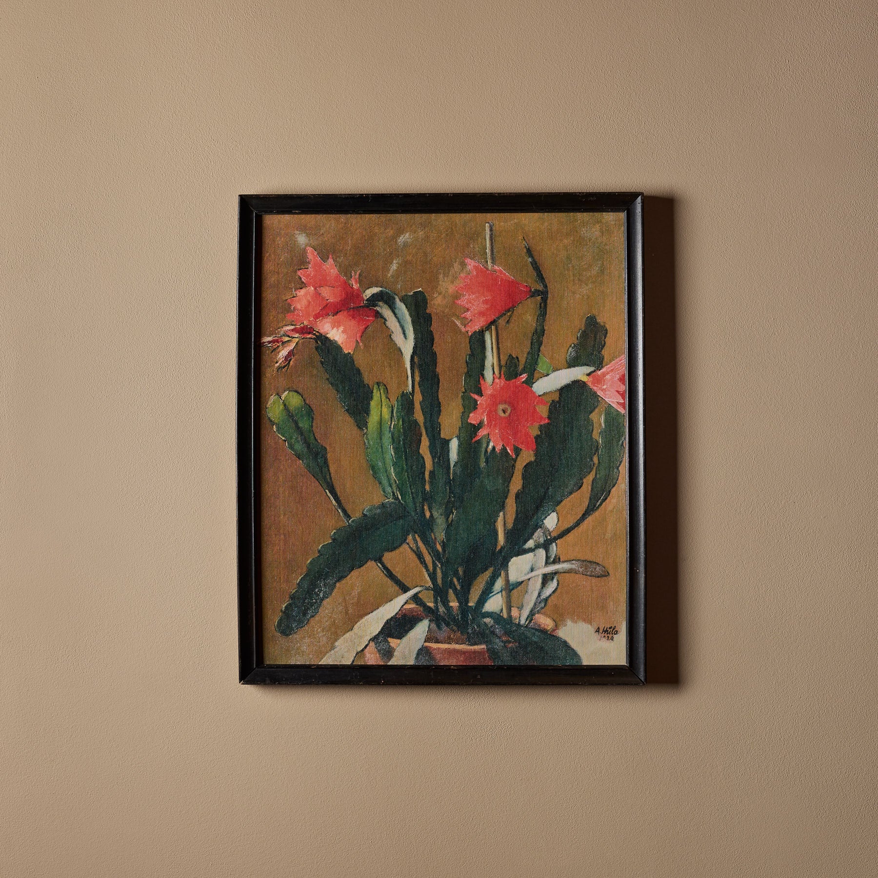 L’Épiphyllum is a one-of-a-kind hand mounted wall art made from a solid wood frame and a printed canvas. Carefully curated by us, L’Épiphyllum rouge features a vintage framing and a fresh new print of a classic artwork, mixing old and new to create a masterful composition.