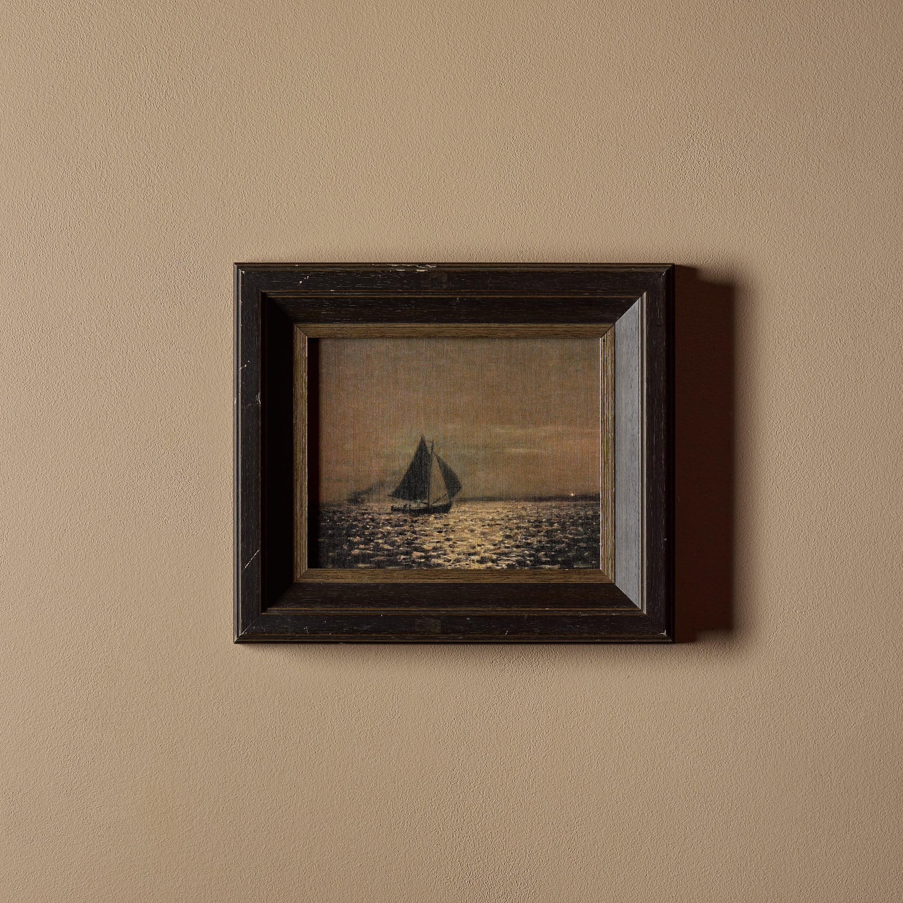 The frames themselves are 100% vintage. However, the canvas inside features a new print. We carefully curate artworks from various artists and pair them with vintage frames to create a unique and beautiful piece of art. Each composition is handmade.