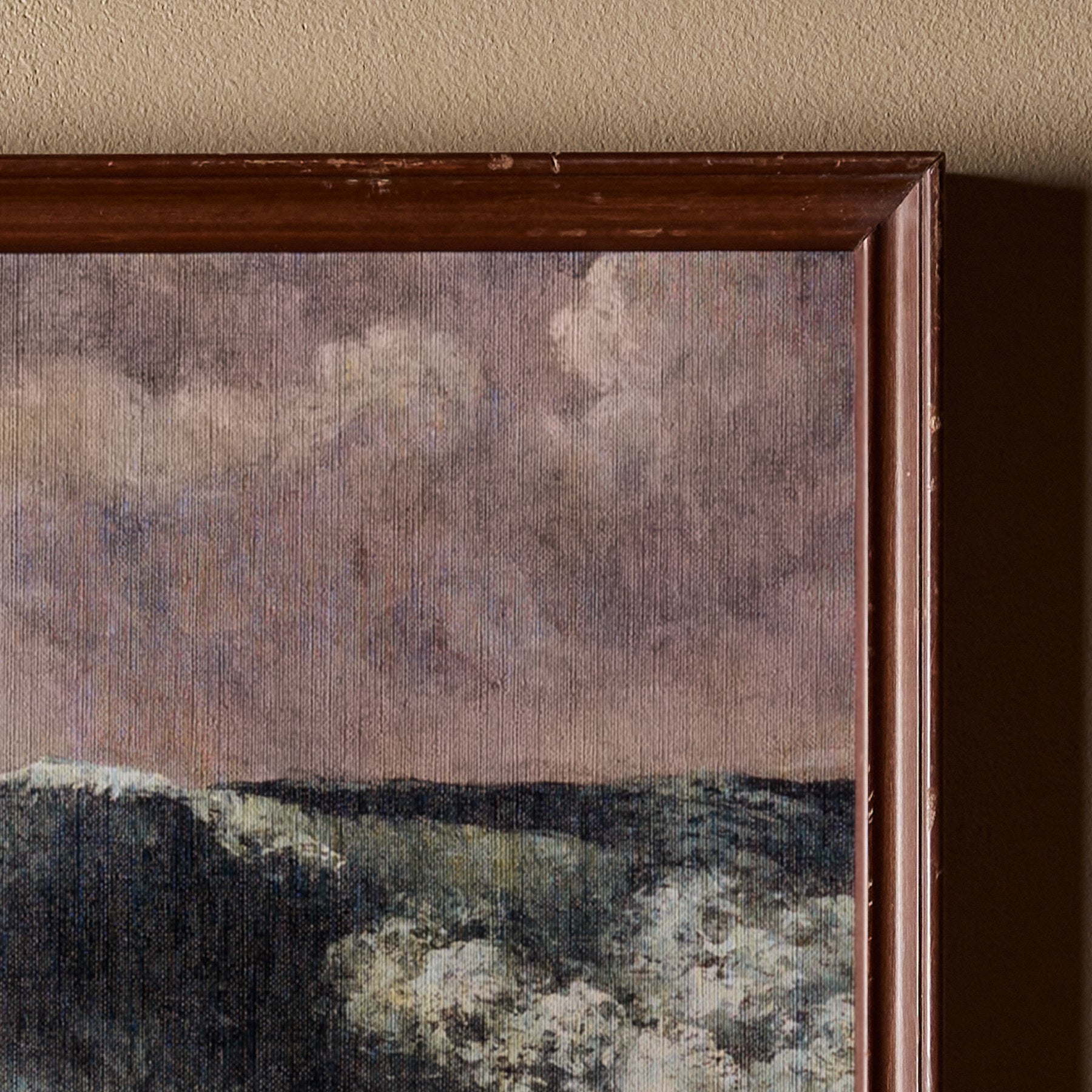La vague is a one-of-a-kind hand mounted wall art made from a solid wood frame and a printed canvas. Carefully curated by us, La vague features a vintage framing and a fresh new print of a classic artwork, mixing old and new to create a masterful composition.