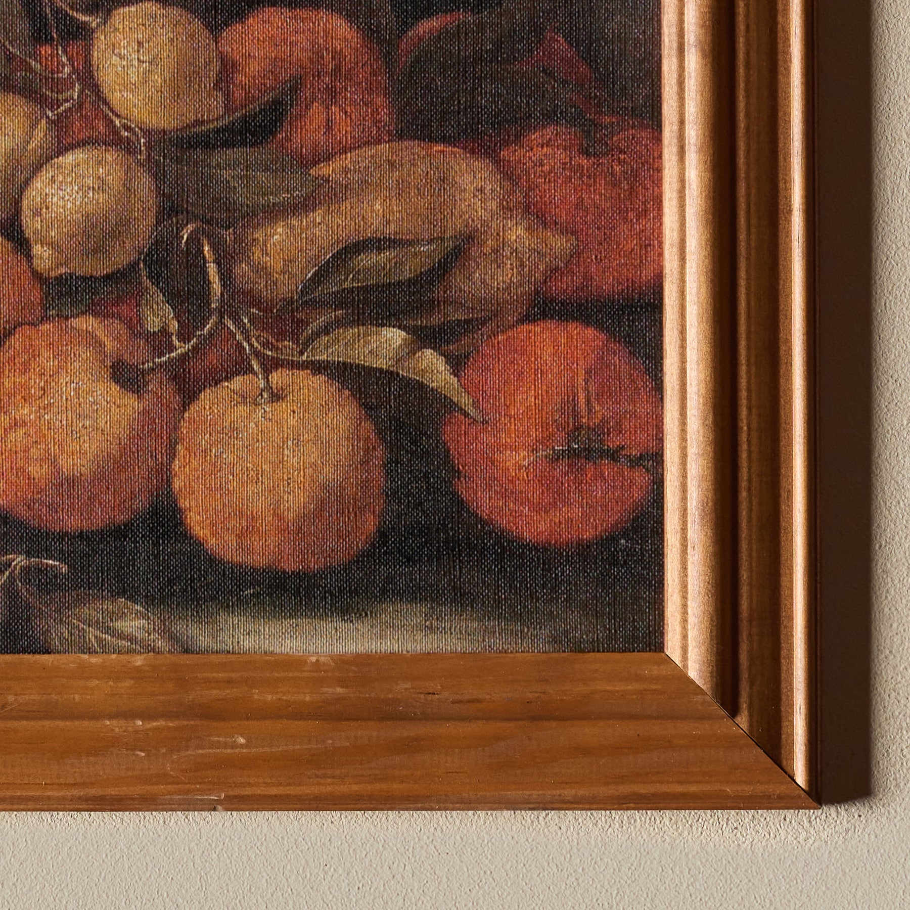 Les agrumes is a one-of-a-kind hand mounted wall art made from a solid wood frame and a printed canvas. Carefully curated by us, Les agrumes features a vintage framing and a fresh new print of a classic artwork, mixing old and new to create a masterful composition.