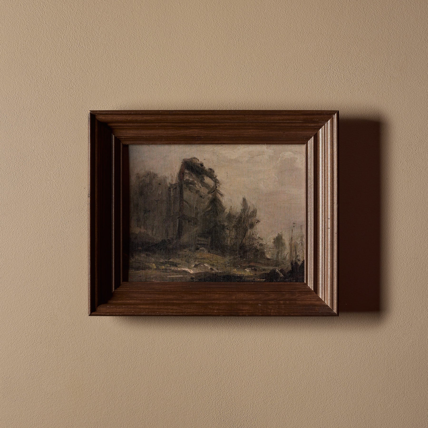 Les temps gris is a one-of-a-kind hand mounted wall art made from a solid wood frame and a printed canvas. Carefully curated by us, La clairière fendue features a vintage framing and a fresh new print of a classic artwork, mixing old and new to create a masterful composition.