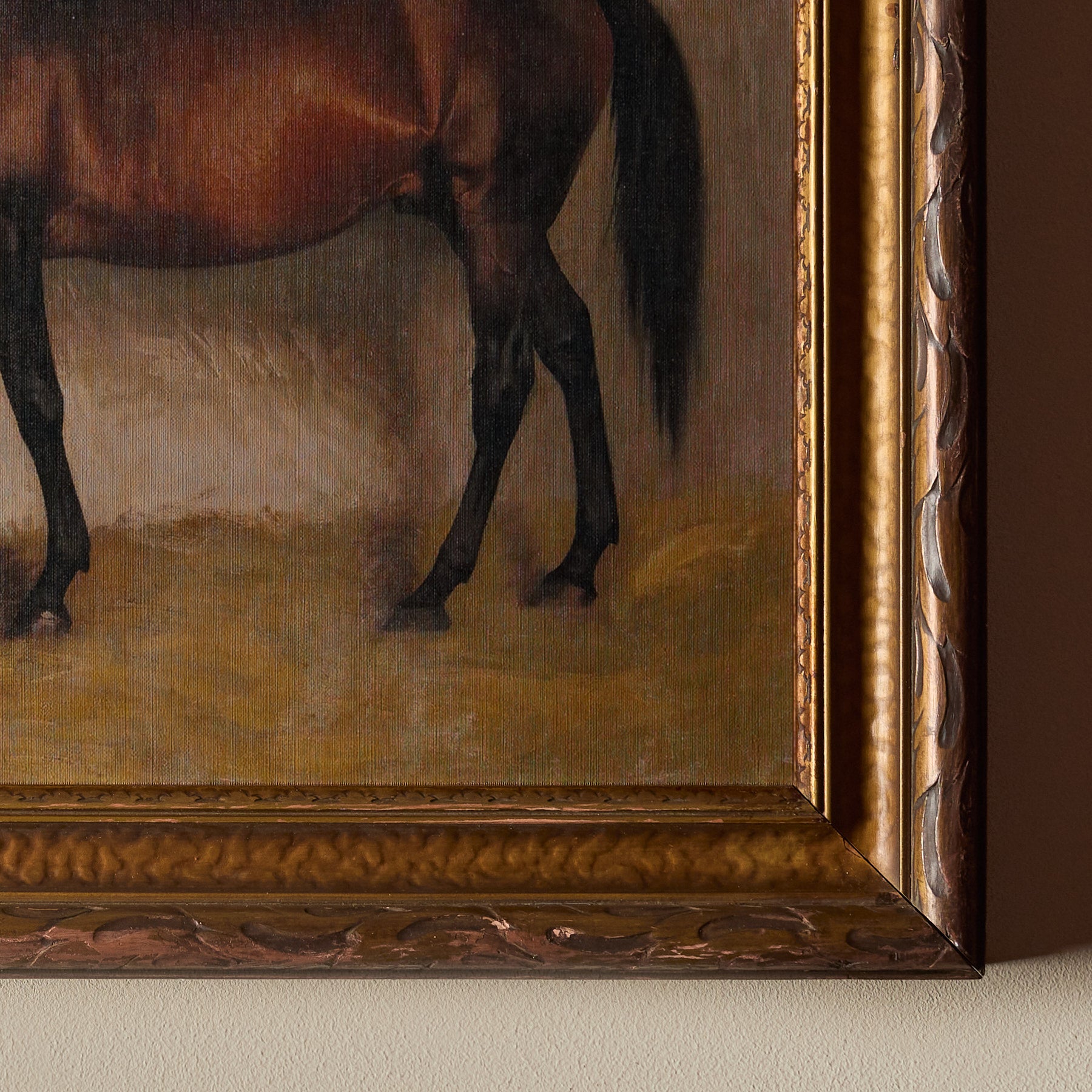 Mustang is a one-of-a-kind hand mounted wall art made from a solid wood frame and a printed canvas. Carefully curated by us, Mustang features a vintage framing and a fresh new print of a classic artwork, mixing old and new to create a masterful composition.