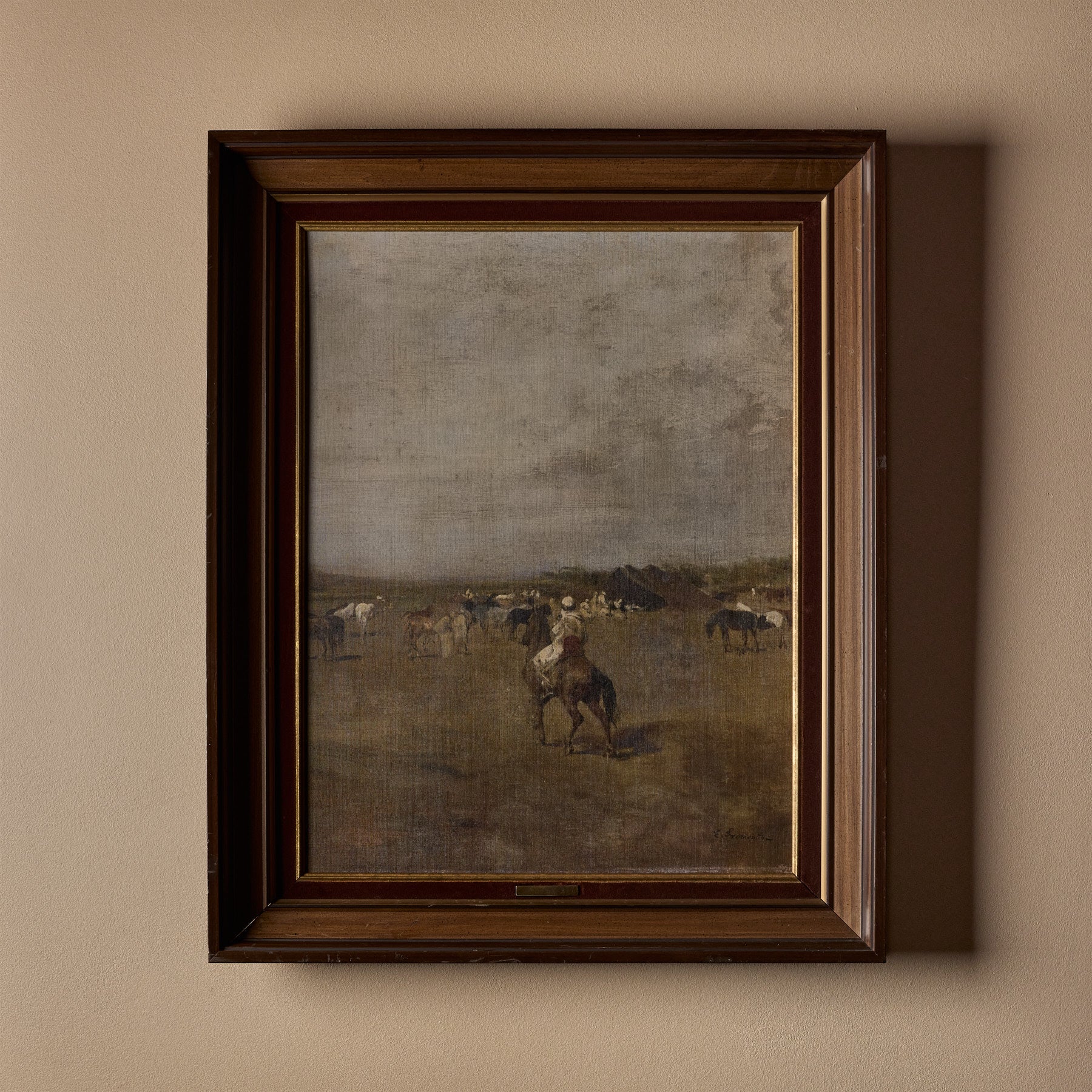 Nomades is a one-of-a-kind hand mounted wall art made from a solid wood frame and a printed canvas. Carefully curated by us, Nomades features a vintage framing and a fresh new print of a classic artwork, mixing old and new to create a masterful composition.