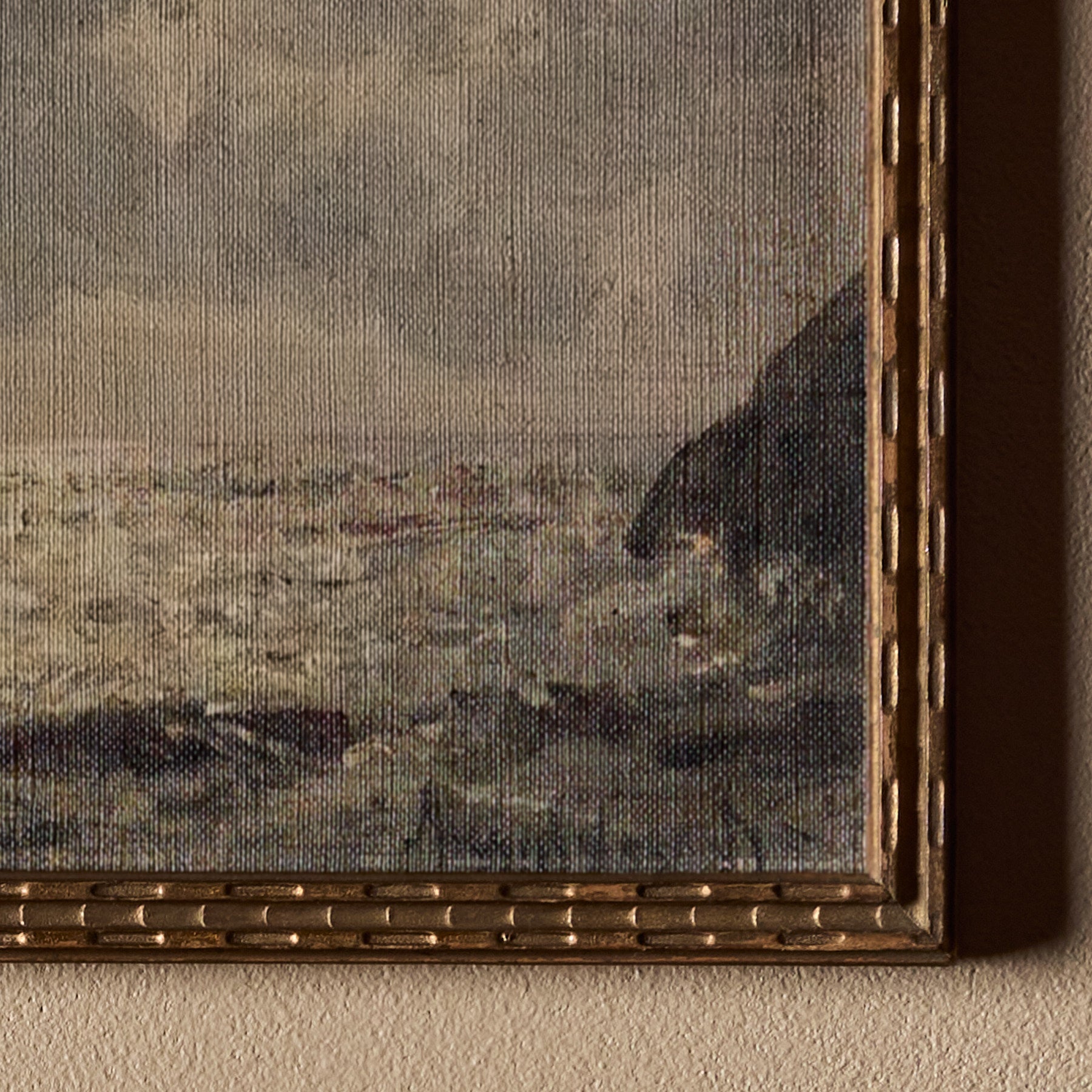 The frames themselves are 100% vintage. However, the canvas inside features a new print. We carefully curate artworks from various artists and pair them with vintage frames to create a unique and beautiful piece of art. Each composition is handmade.