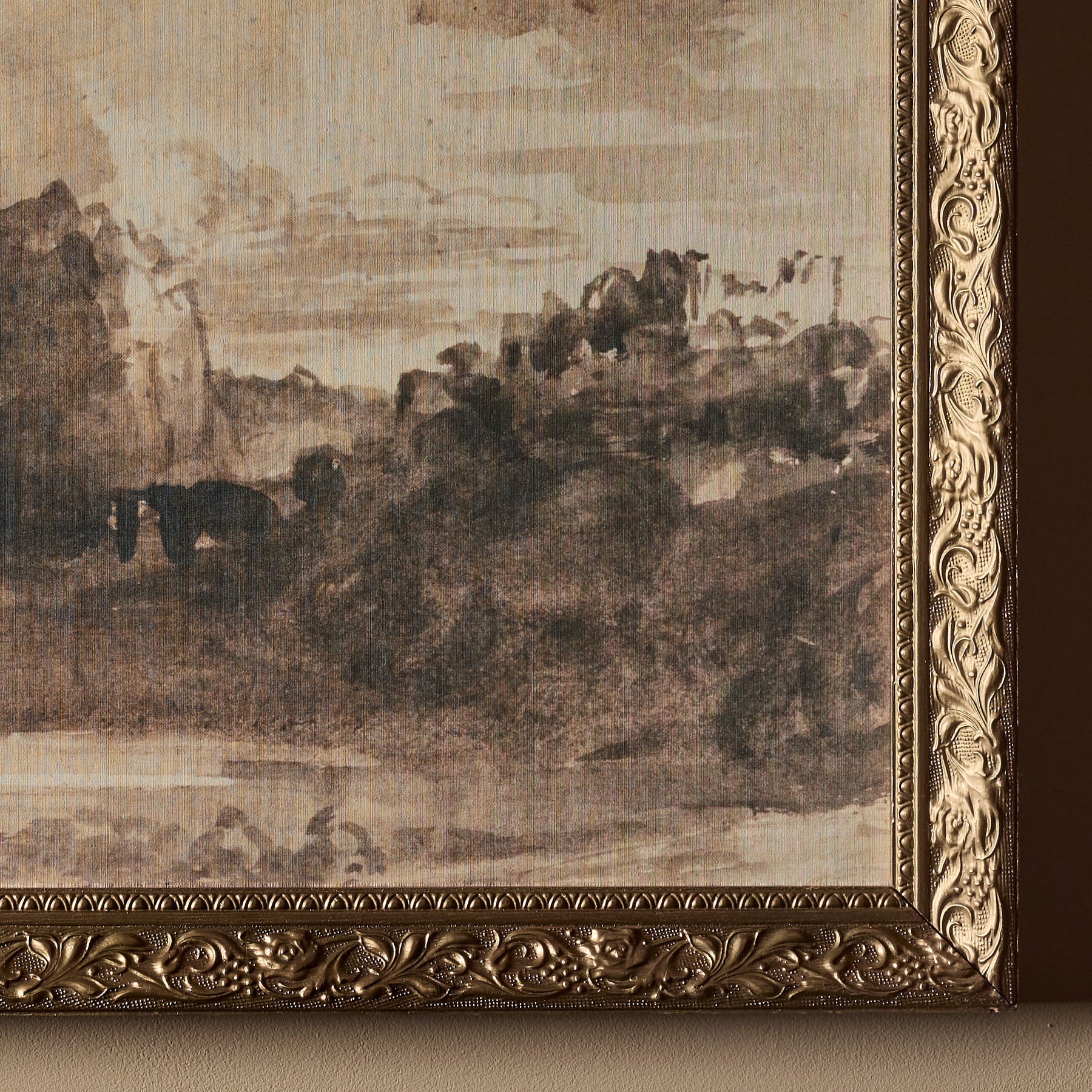 Paysage flou is a one-of-a-kind hand mounted wall art made from a solid wood frame and a printed canvas. Carefully curated by us, Paysage flou features a vintage framing and a fresh new print of a classic artwork, mixing old and new to create a masterful composition.