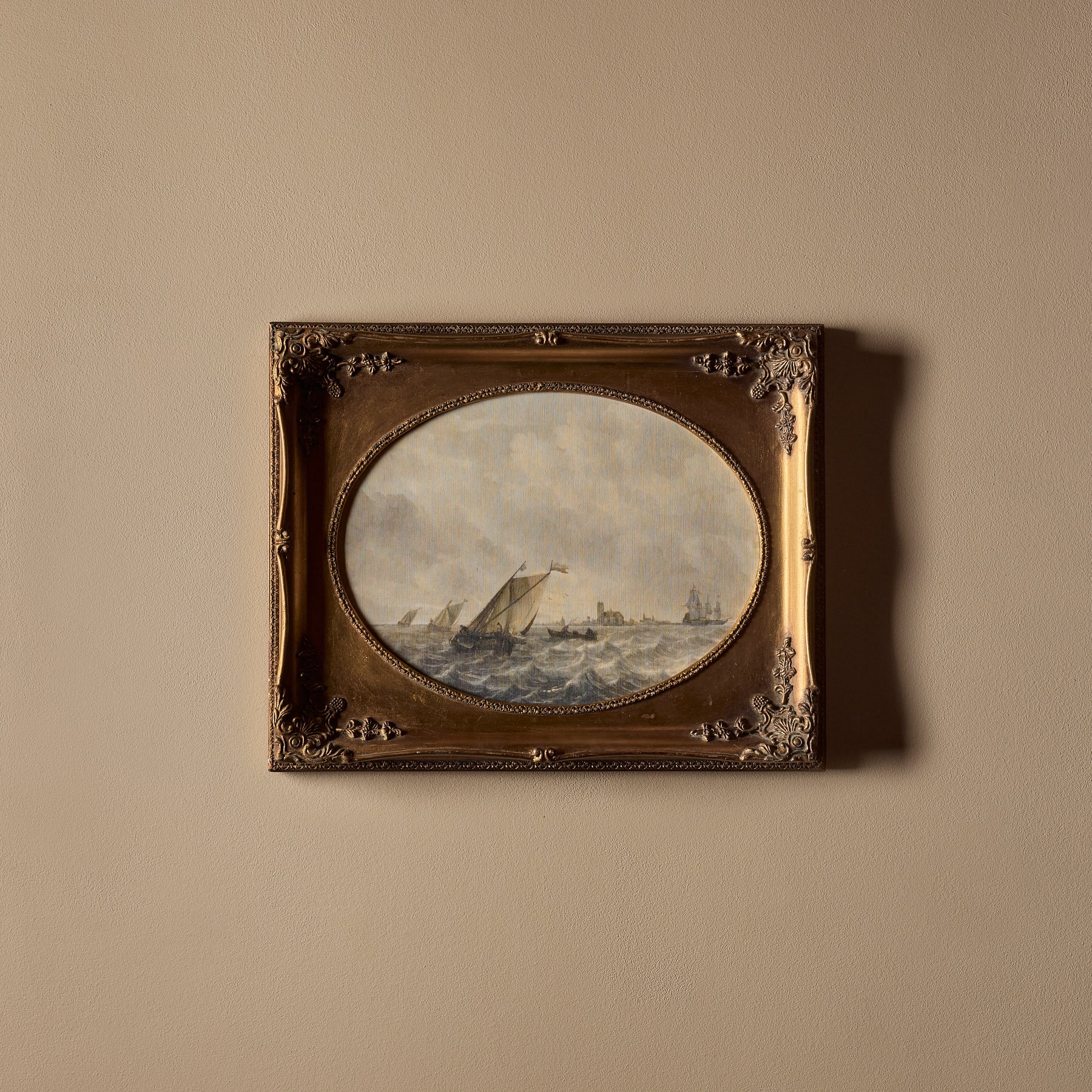 The frames themselves are 100% vintage. However, the canvas inside features a new print. We carefully curate artworks from various artists and pair them with vintage frames to create a unique and beautiful piece of art. Each composition is handmade.