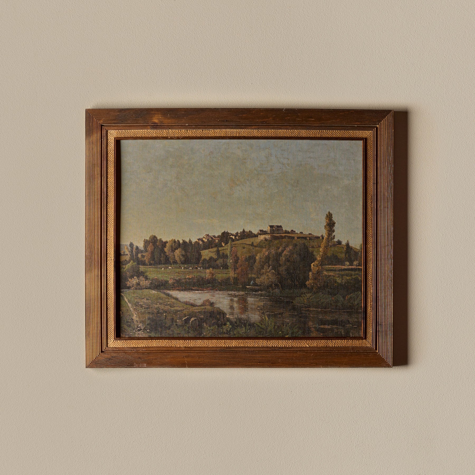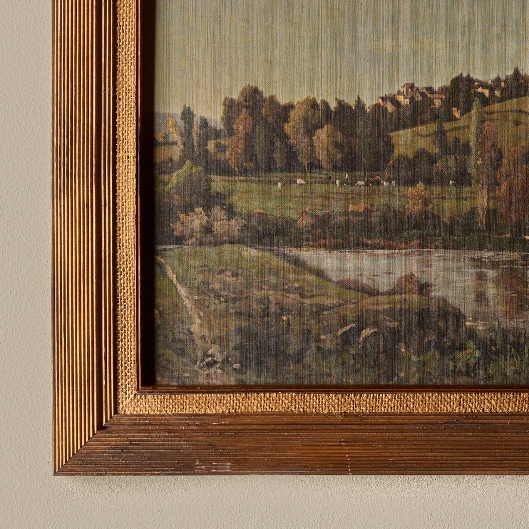 The frames themselves are 100% vintage. However, the canvas inside features a new print. We carefully curate artworks from various artists and pair them with vintage frames to create a unique and beautiful piece of art. Each composition is handmade.