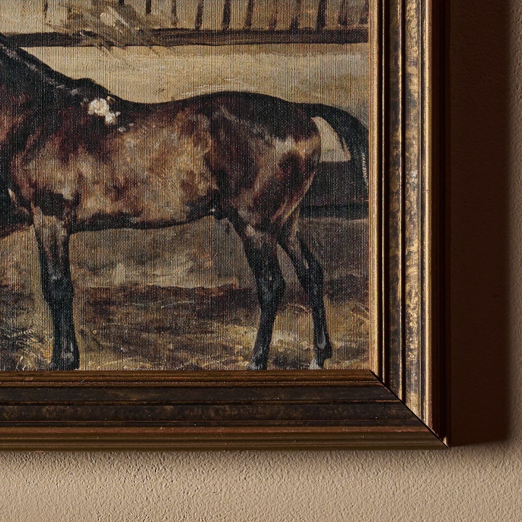 Le Whiskey is a one-of-a-kind hand mounted wall art made from a solid wood frame and a printed canvas. Carefully curated by us, Le cheval brun features a vintage framing and a fresh new print of a classic artwork, mixing old and new to create a masterful composition.