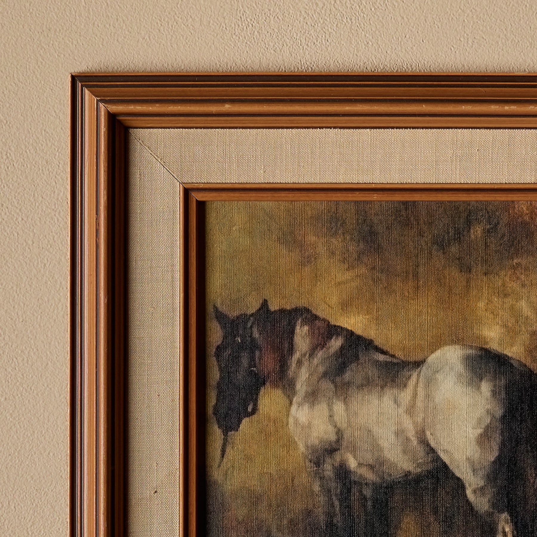 Harmonie équine is a one-of-a-kind hand mounted wall art made from a solid wood frame and a printed canvas. Carefully curated by us, Harmonie équine features a vintage framing and a fresh new print of a classic artwork, mixing old and new to create a masterful composition.