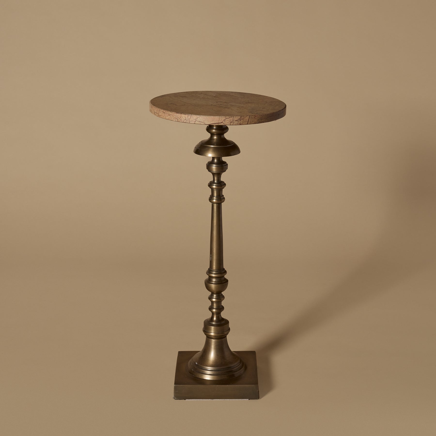 Add a touch of elegance to your decor with our vintage midcentury marble & brass pedestal side table. All our furniture pieces are carefully selected and restored by our team. Each piece embodies the timeless and elegant signature of Blanc Marine.