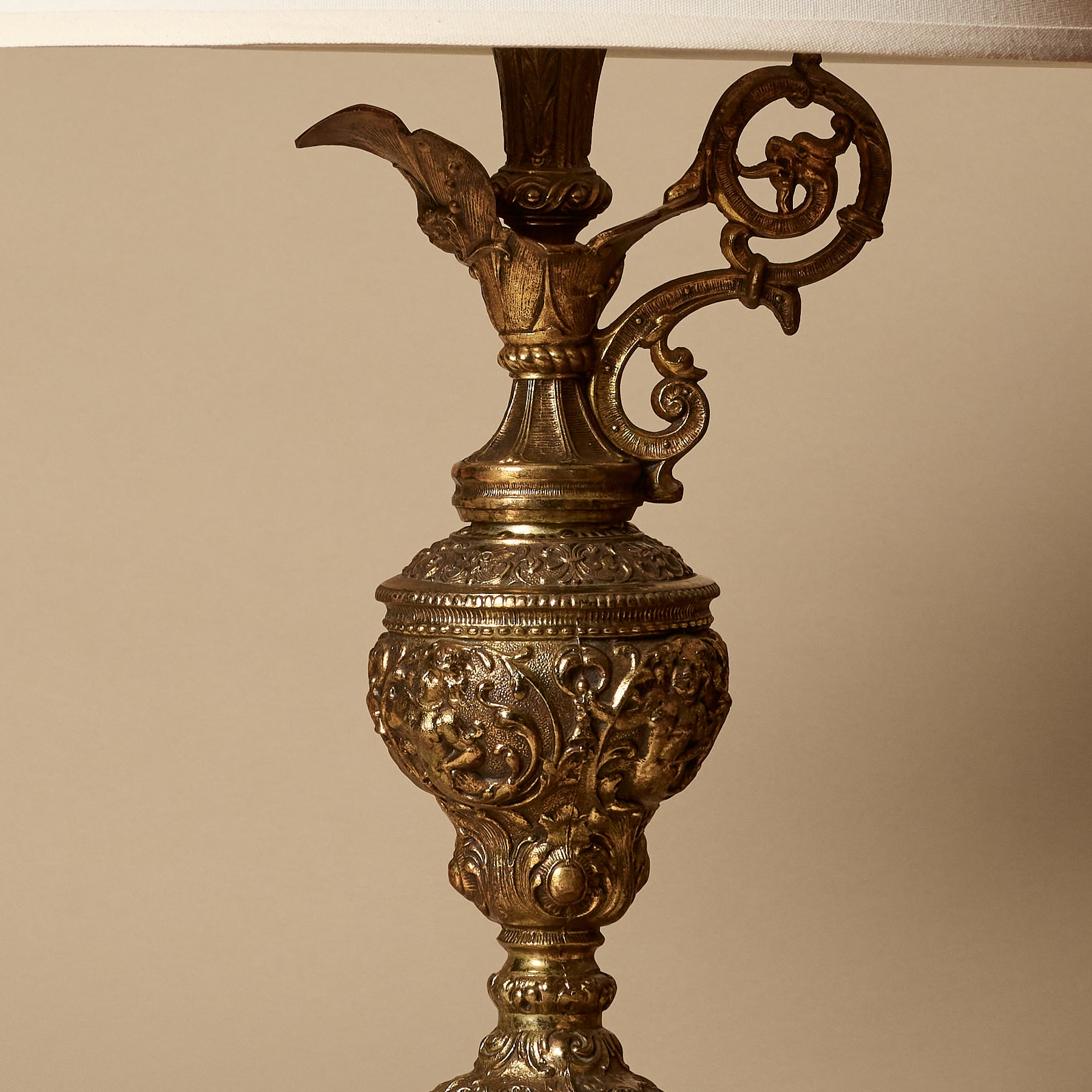 * This lamp has a beautiful aged patina with darkening in engraved edges.