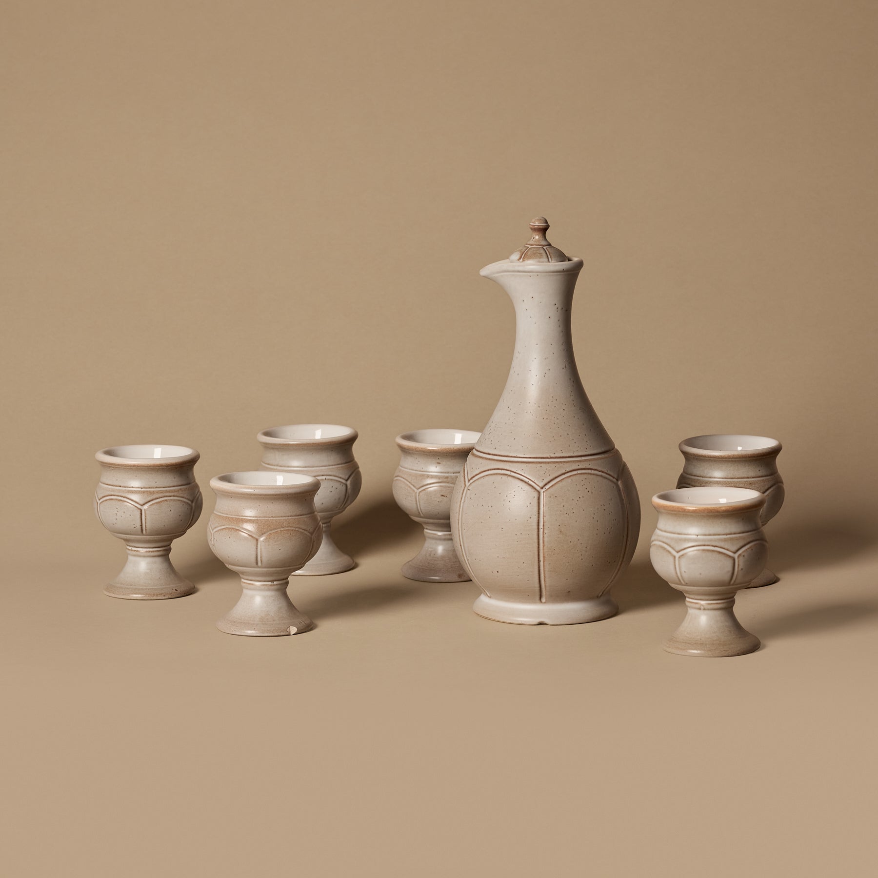 1960s Beauceware Carafe Set with Pedestal Cups Marked CH-28