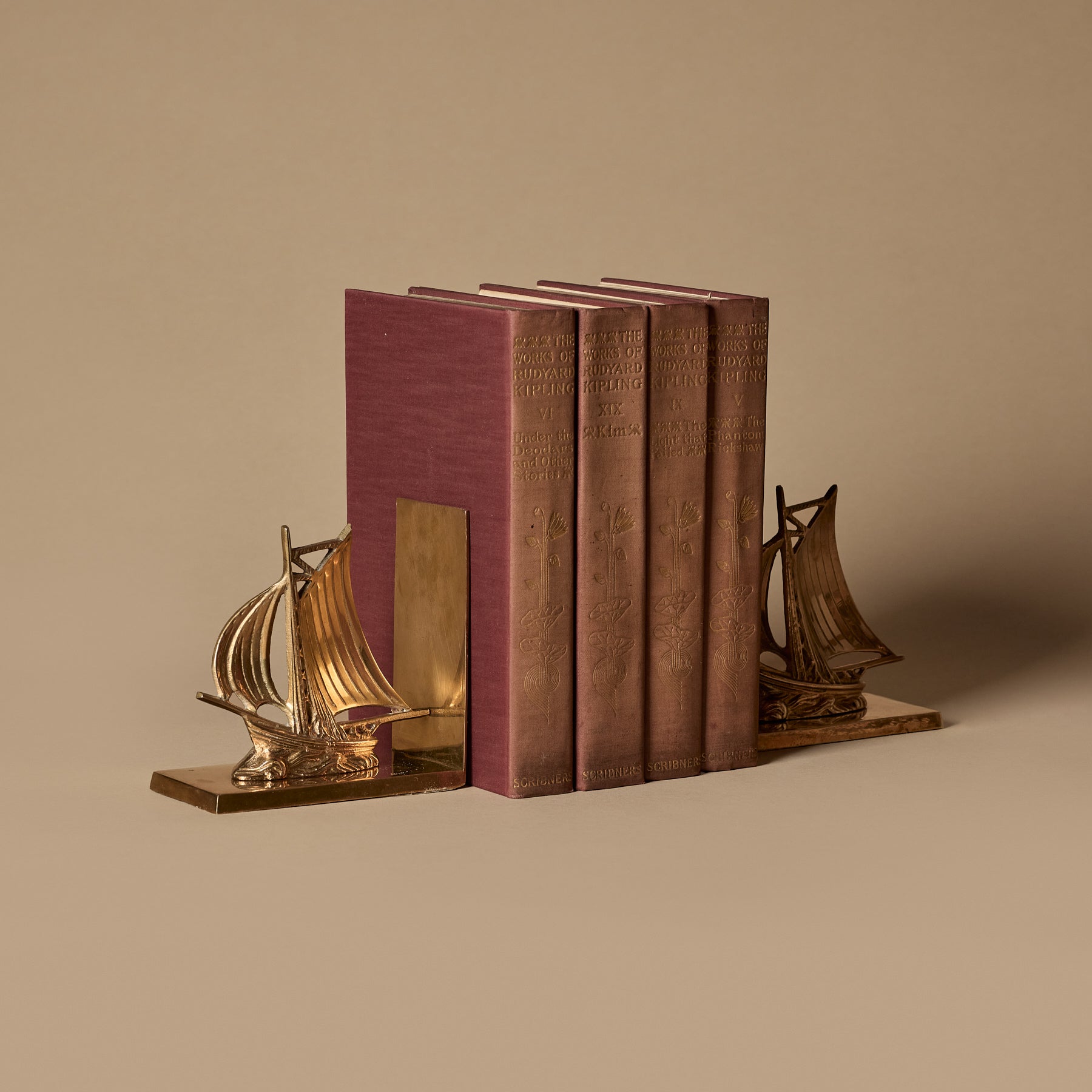 Add a touch of elegance to your decor with our vintage MCM brass sailboat bookends & antique books. All our objects are carefully selected one by one by our team, both in Canada and abroad. Each piece embodies the timeless and elegant signature of Blanc Marine.