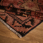 Le tapis Benito est un tapis luxueux et unique composé à 100% de laine et d'une base en coton. Magnifiquement noué à la main et fabriqué par des artisans locaux, ce tapis aux accents cuivre, cuivre foncé, rouge, noir, orange brûlé, beige, vert, kaki clair et sarcelle apportera chaleur et raffinement à tout espace.