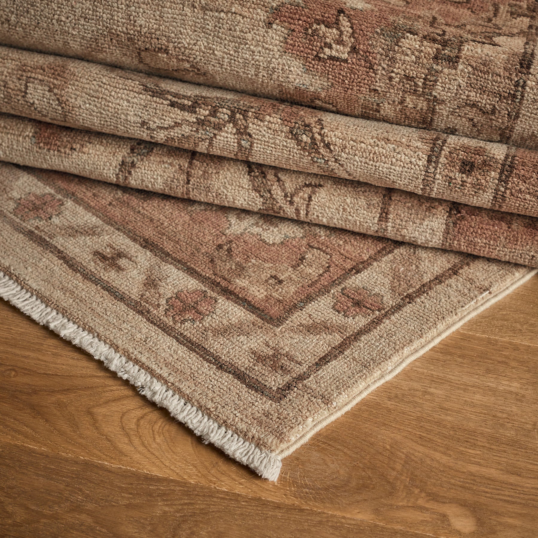 Le tapis Adalynn est un tapis luxueux et unique composé à 100% de laine et d'une base en coton. Magnifiquement noué à la main et fabriqué par des artisans locaux, ce tapis aux accents beige, tan, cuivre, marron foncé et taupe apportera chaleur et raffinement à n'importe quel espace.