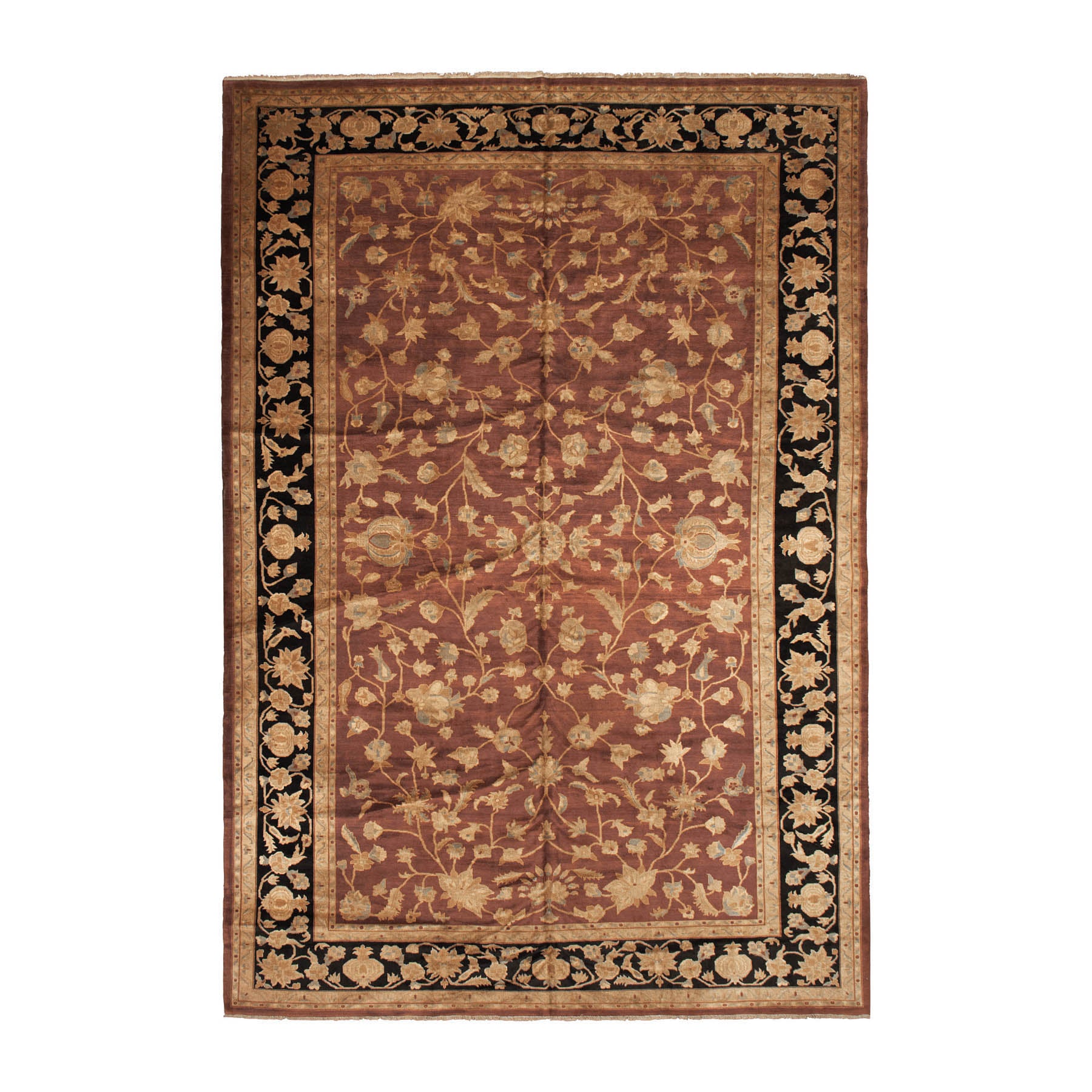 Le tapis Clotilde est un tapis luxueux et unique composé à 100% de laine et d'une base en coton. Magnifiquement noué à la main et fabriqué par des artisans locaux, ce tapis aux accents cuivre foncé, noir, tan, beige, rouge foncé, bleu clair et kaki clair apportera chaleur et raffinement à tout espace.