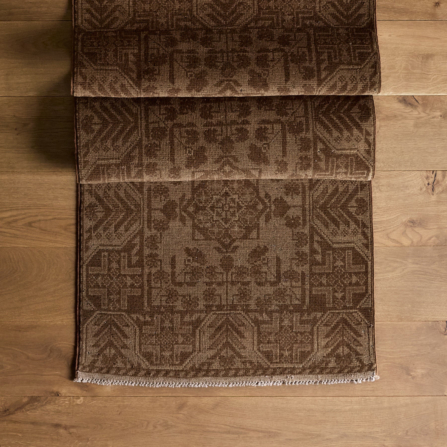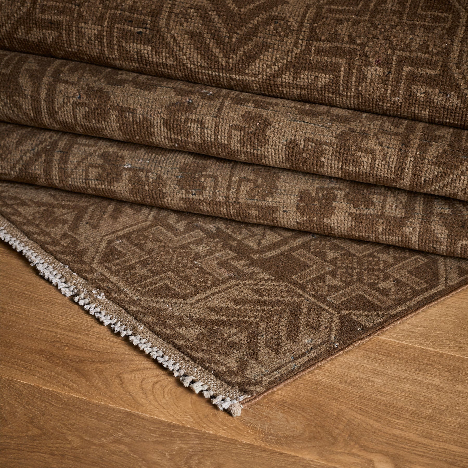 Le tapis Curtis est un tapis luxueux et unique construit à partir de 100% de laine et d'une base en coton. Magnifiquement noué à la main et fabriqué par des artisans locaux, ce tapis aux accents bruns apportera chaleur et raffinement à tout espace.