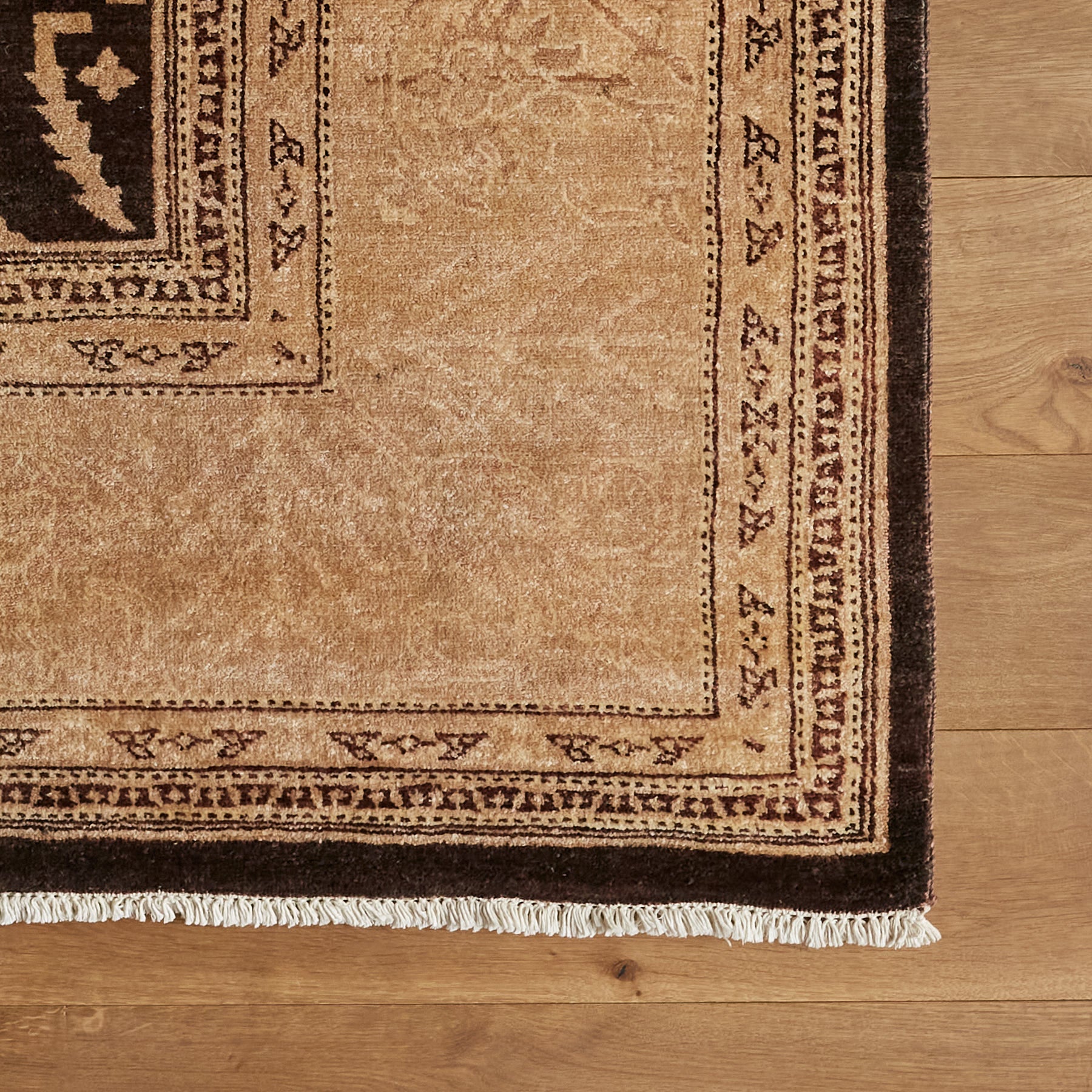 Le tapis Eliott est un tapis luxueux et unique construit à partir de 100% de laine et d'une base en coton. Magnifiquement noué à la main et fabriqué par des artisans locaux, ce tapis aux accents marron foncé, tan, khaki clair et ivoire apportera chaleur et raffinement à tout espace.
