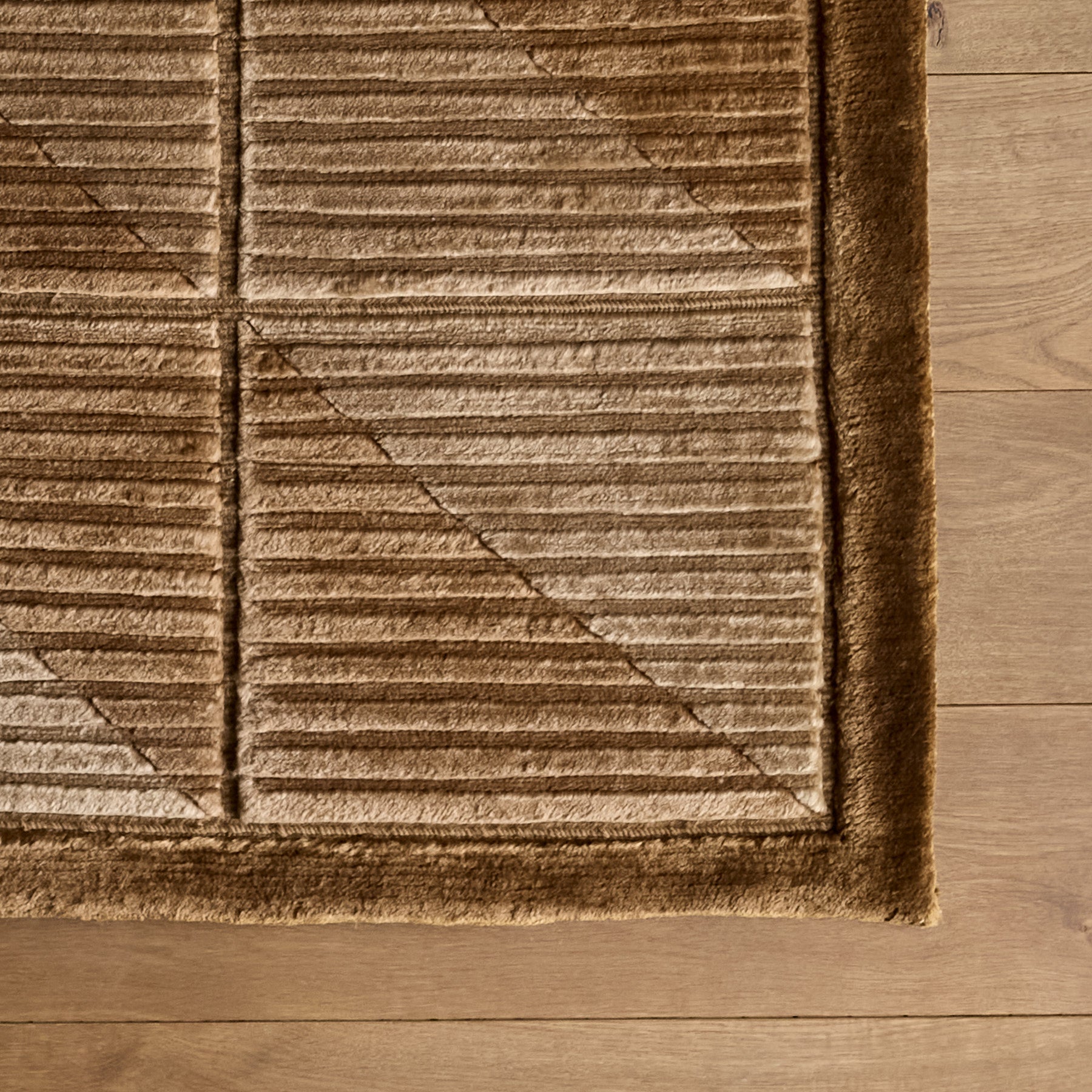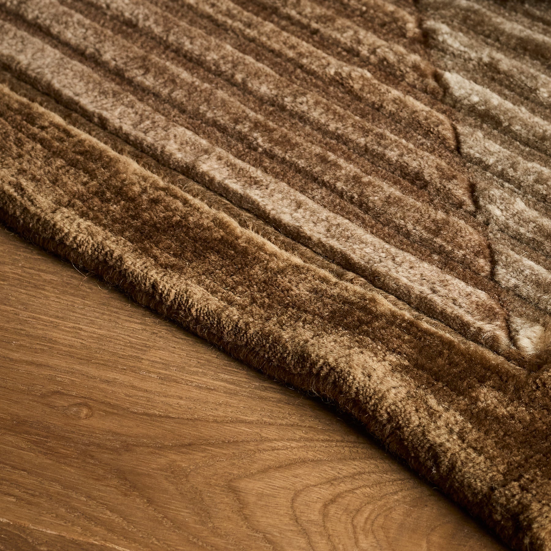 Le tapis Esme est un tapis luxueux et unique composé à 100% de laine et d'une base en coton. Magnifiquement noué à la main et fabriqué par des artisans locaux, ce tapis aux accents tan, ocre, beige et marron apportera chaleur et raffinement à n'importe quel espace.