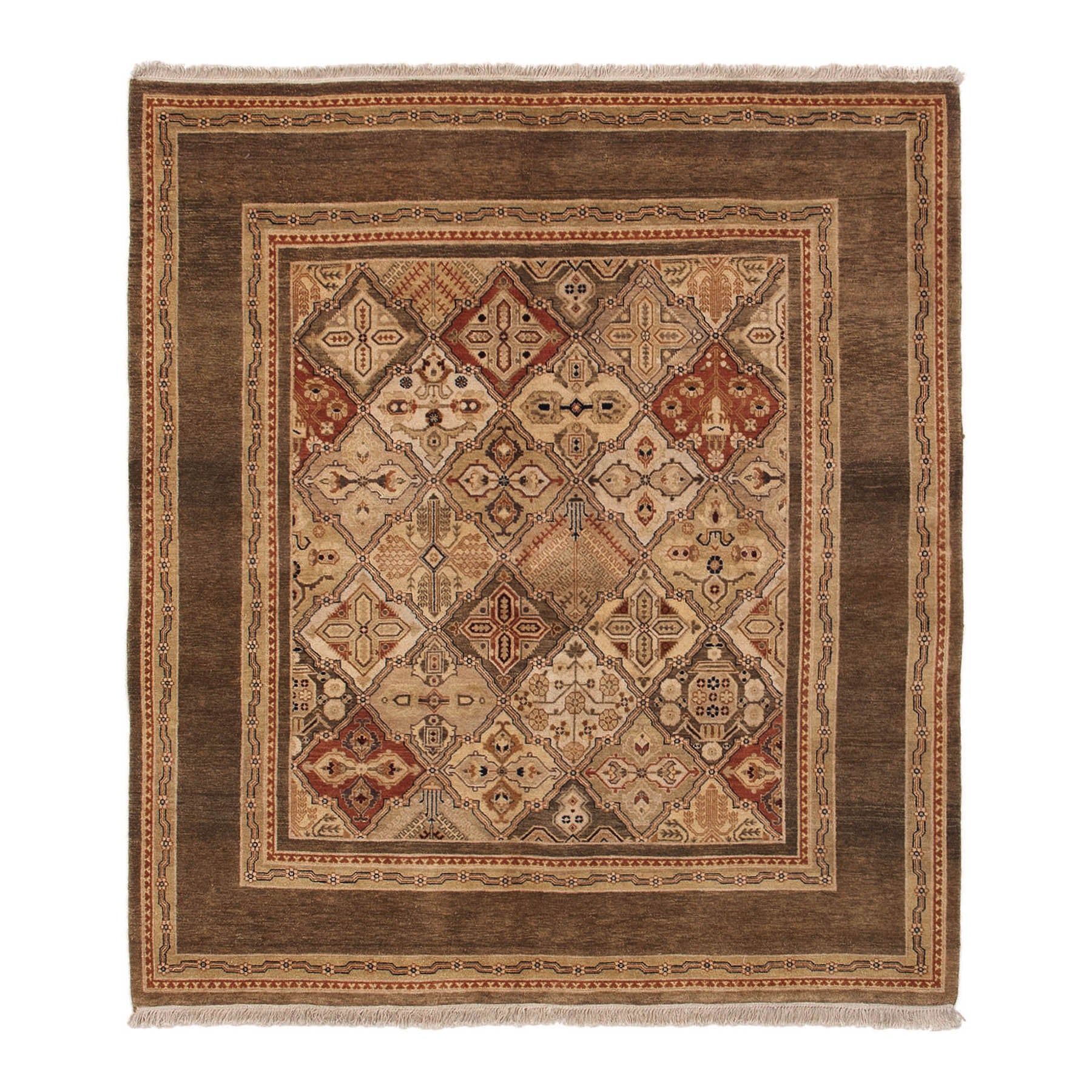 Le tapis Horia est un tapis luxueux et unique, fabriqué à partir de 100 % de laine et d'une base en coton. Magnifiquement noué à la main et fabriqué par des artisans locaux, ce tapis aux accents fauve, cuivre, bleu marine foncé, ivoire, kaki et kaki clair apportera chaleur et raffinement à n'importe quel espace.