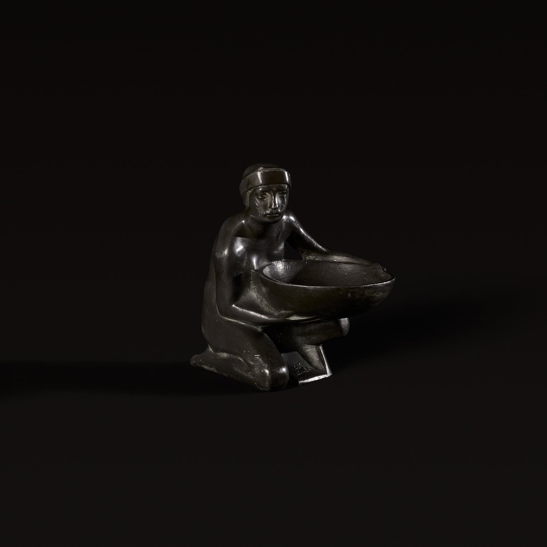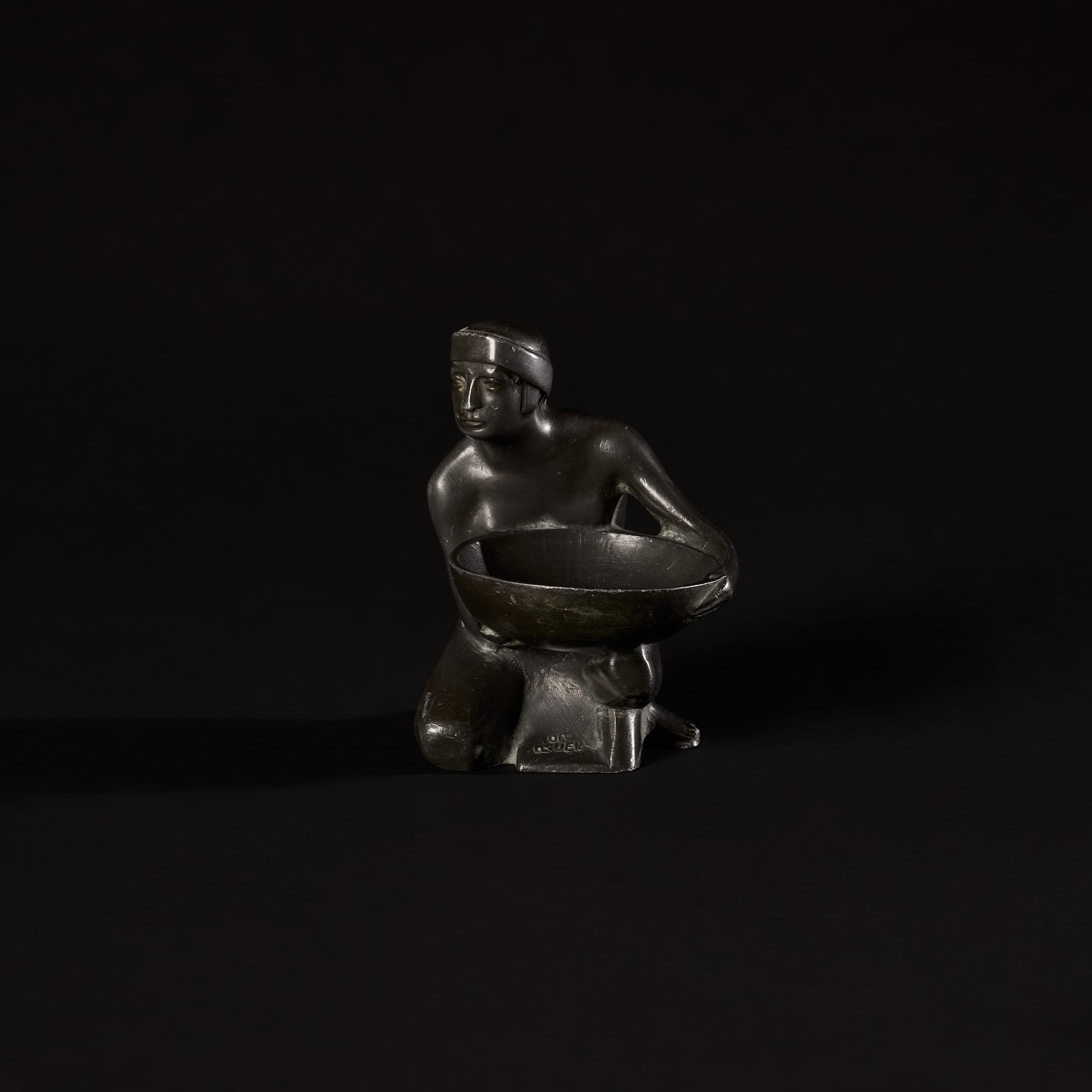 Sculpture porte-bol en bronze de Gurschner du début du 20e siècle marqué 'OLT Osijek'