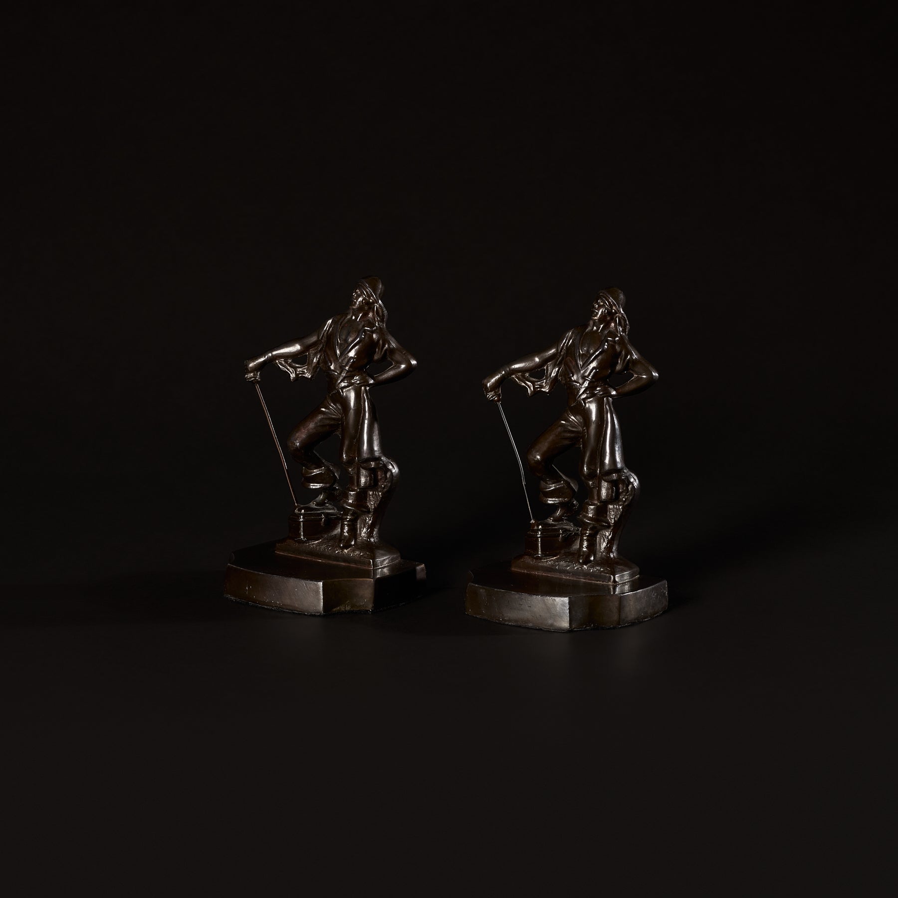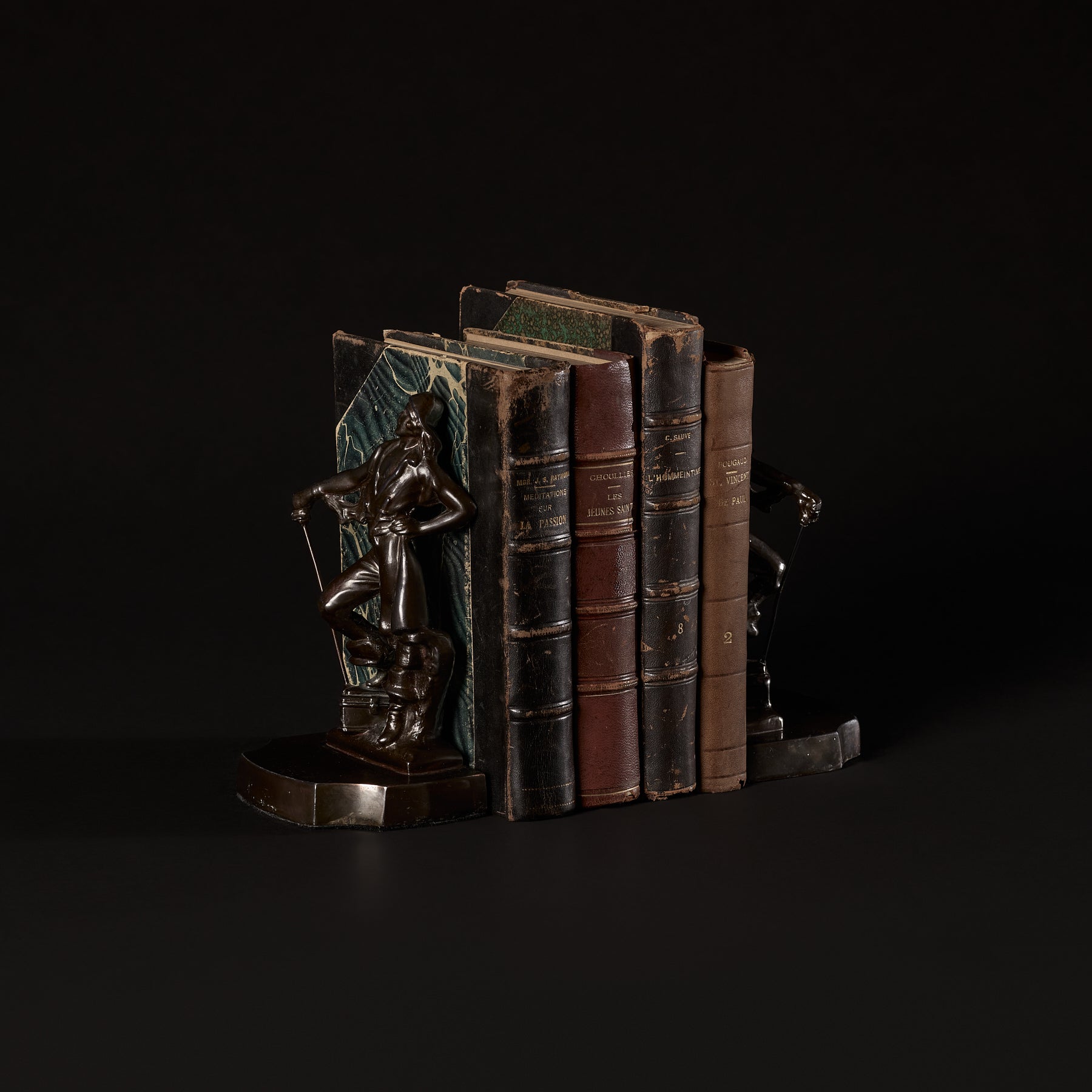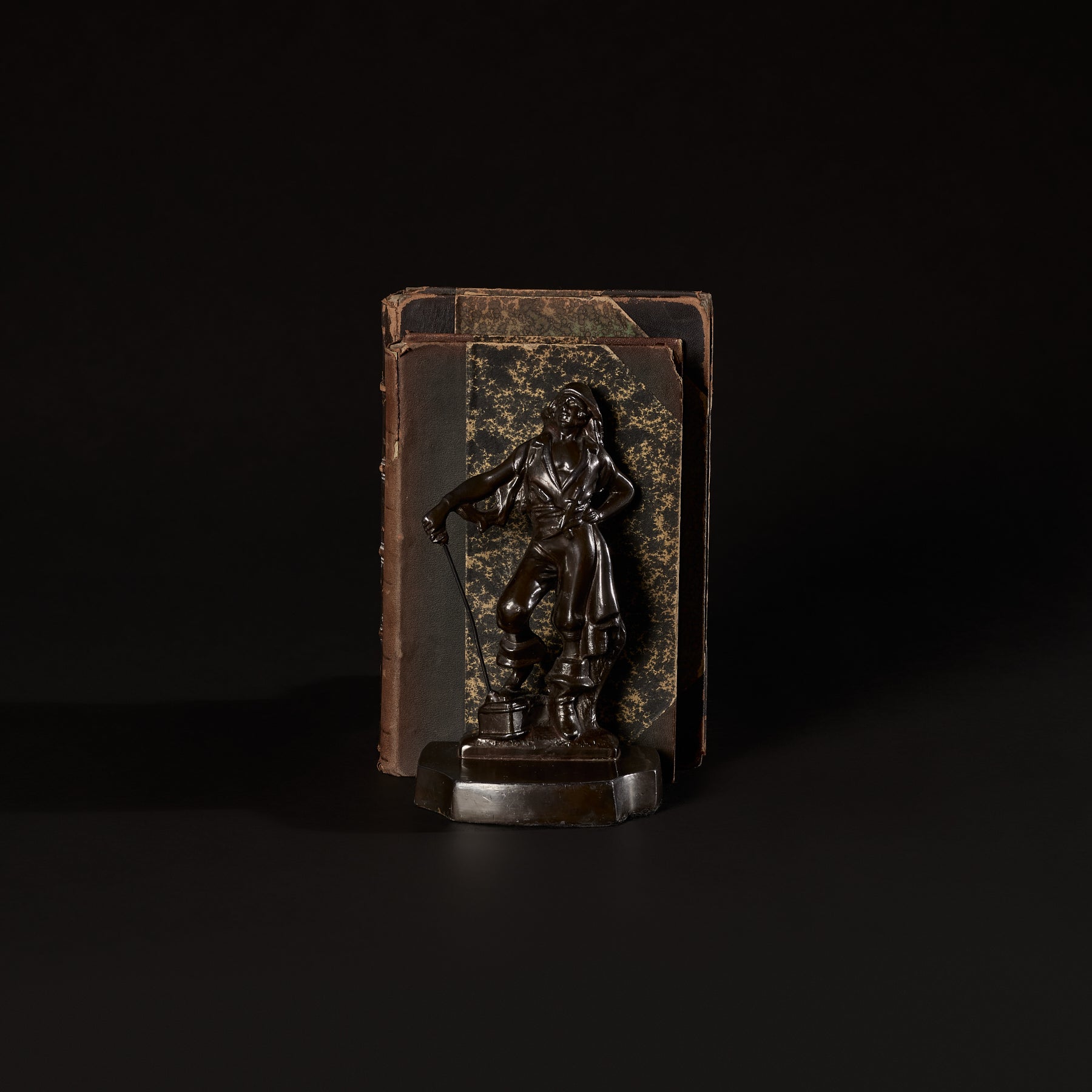 * Les deux serre-livres conservent une patine sombre et homogène, avec seulement une légère usure de surface visible sur certaines zones en relief, conforme à l’âge et à la manipulation. L’une des épées des pirates a été remplacée par une tige en métal noir discrète.
