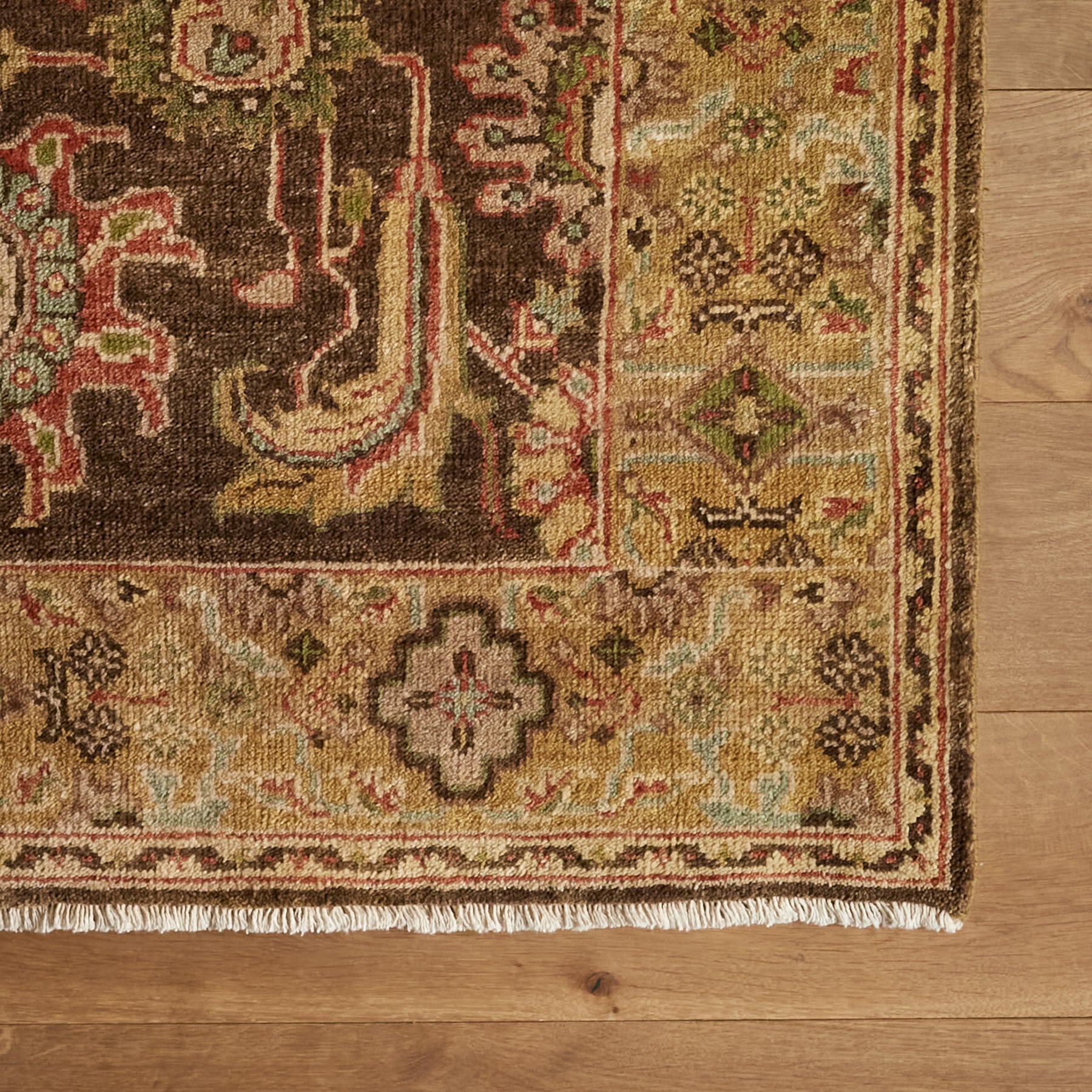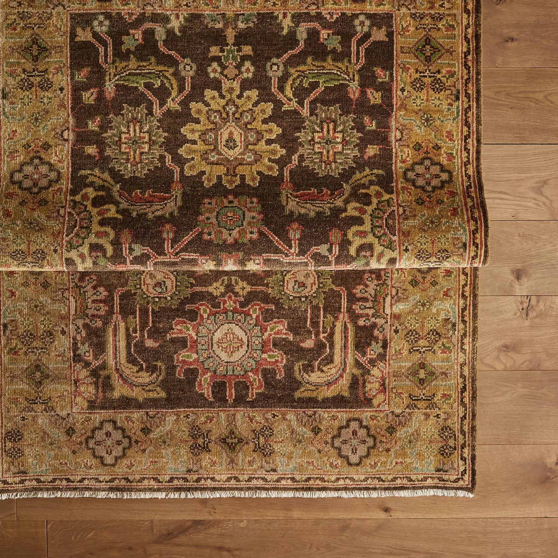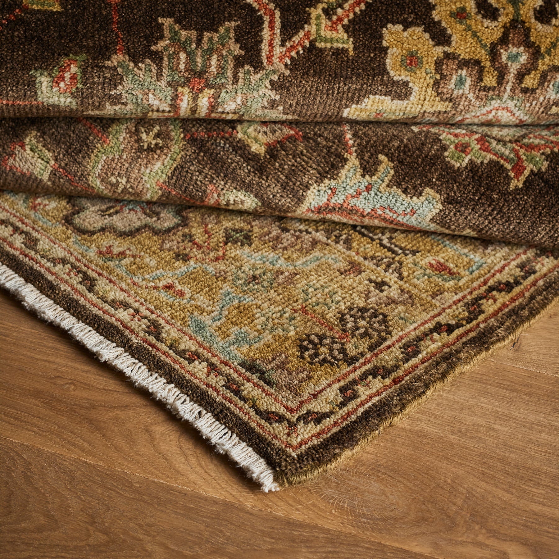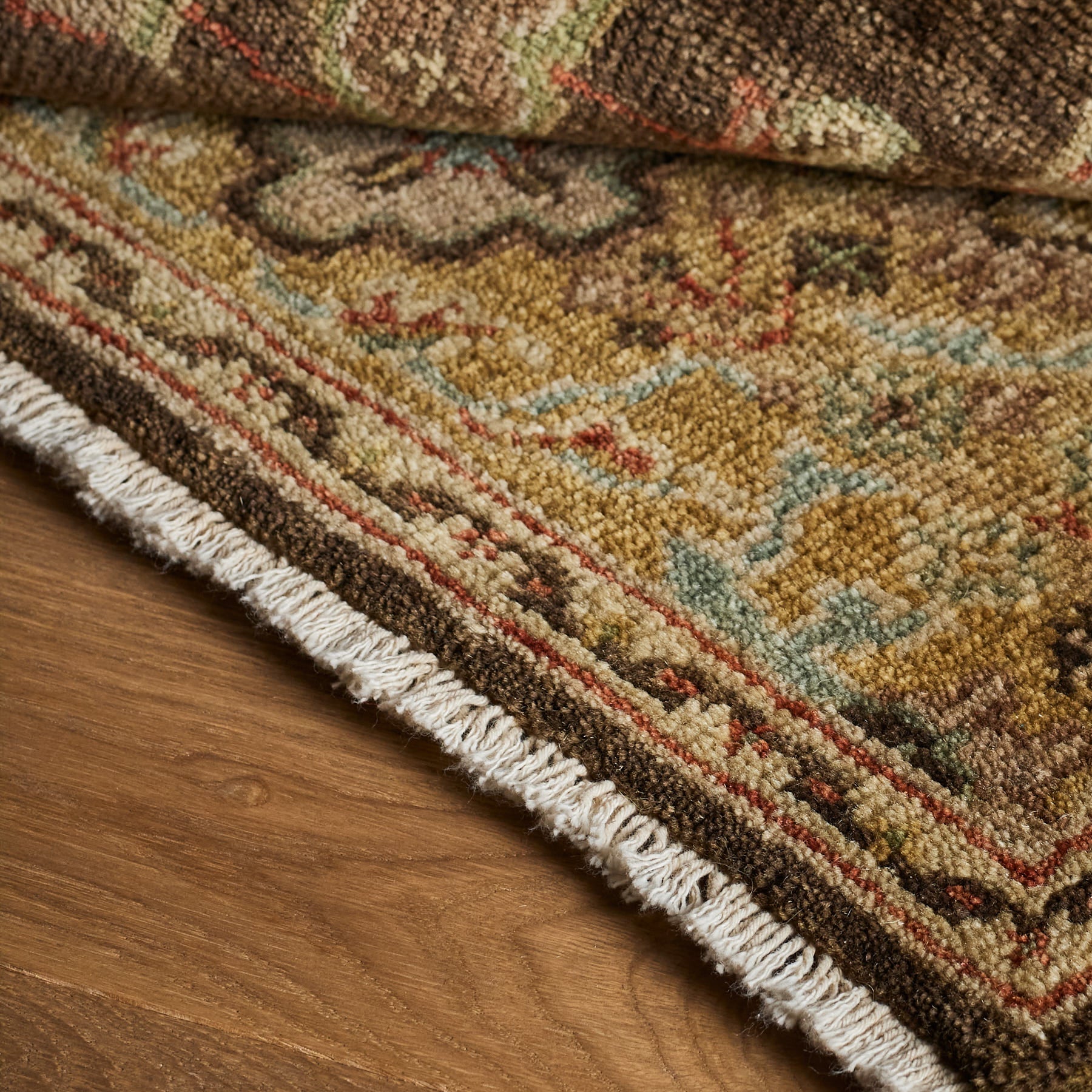Le tapis Neufeld est un tapis luxueux et unique composé à 100% de laine et d'une base en coton. Magnifiquement noué à la main et fabriqué par des artisans locaux, ce tapis aux accents marron, cuivre foncé, ocre, khaki clair, vert et sarcelle apportera chaleur et raffinement à tout espace.