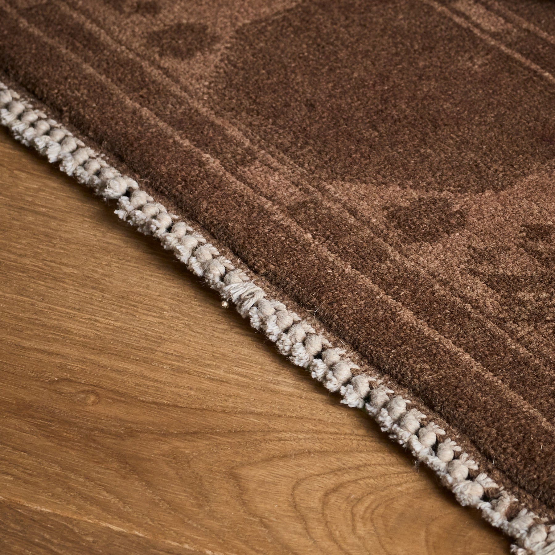 Le tapis Ronan est un tapis luxueux et unique construit à partir de 100% de laine et d'une base en coton. Magnifiquement noué à la main et fabriqué par des artisans locaux, ce tapis aux accents bruns apportera chaleur et raffinement à tout espace.
